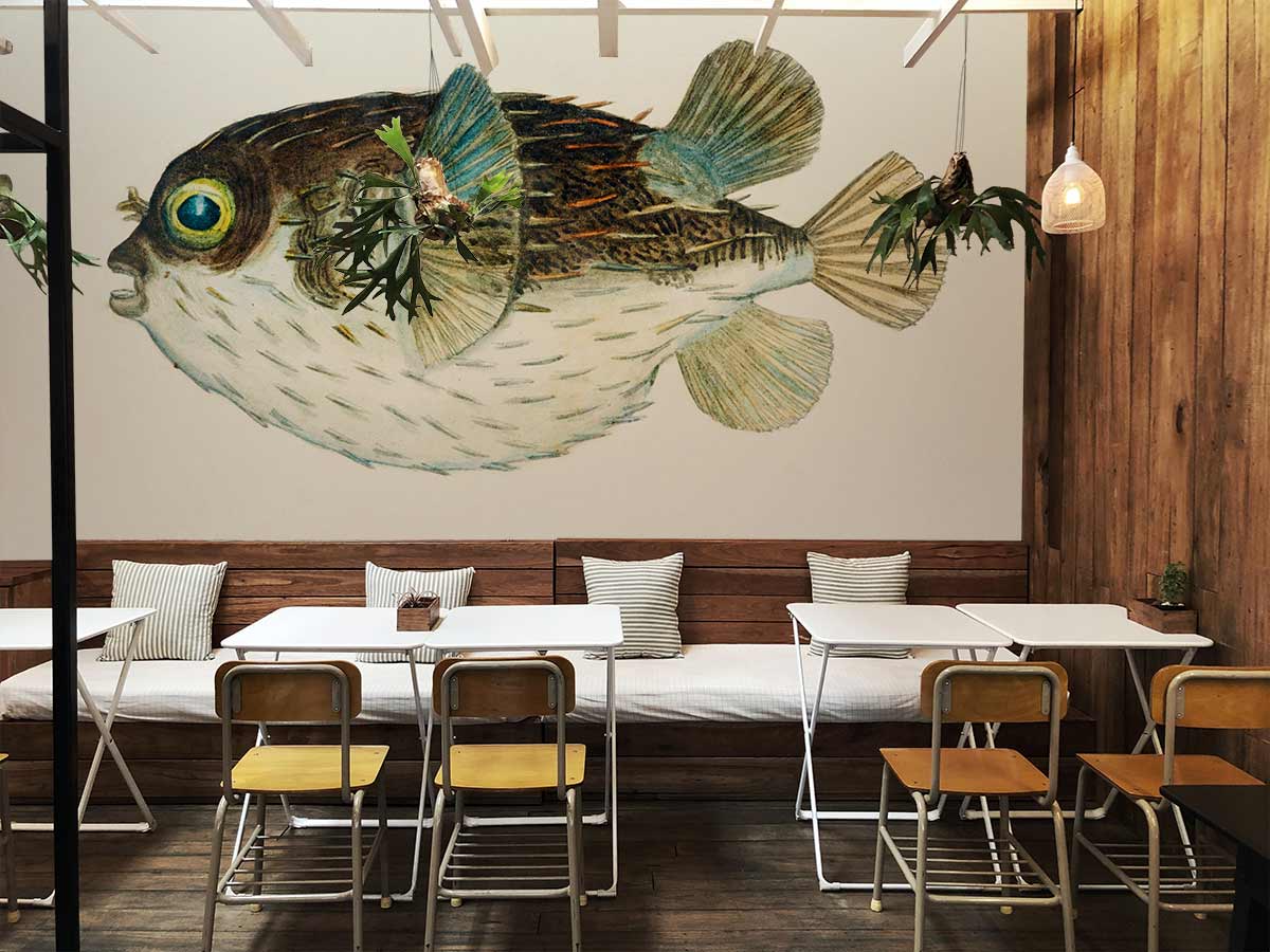 Si vous êtes à la recherche d'un design parfait pour votre restaurant ou si vous planifiez un projet de café et que vous voulez un style en plein essor pour votre établissement, ce Papier peint panoramique pour le poisson diodon-porcupine avec ses épines et son corps épais fera parler votre établissement avec une élégance mélangée à la modernité et il sera vraiment unique et remarquable. Vos invités et clients seront séduits par votre goût pour la décoration de votre établissement et sentiront que les vignes qui les entourent sont si parfaites qu'ils aimeront visiter votre restaurant de plus en plus pour les vibrations amusantes et les jolis thèmes qui les entourent.