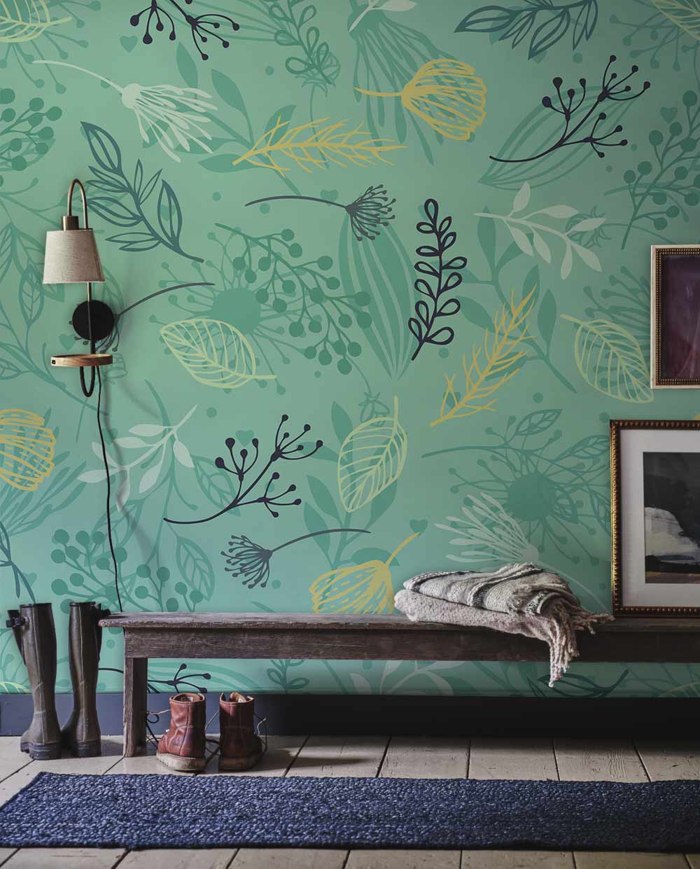 Fond de peint mural à feuilles ditsy