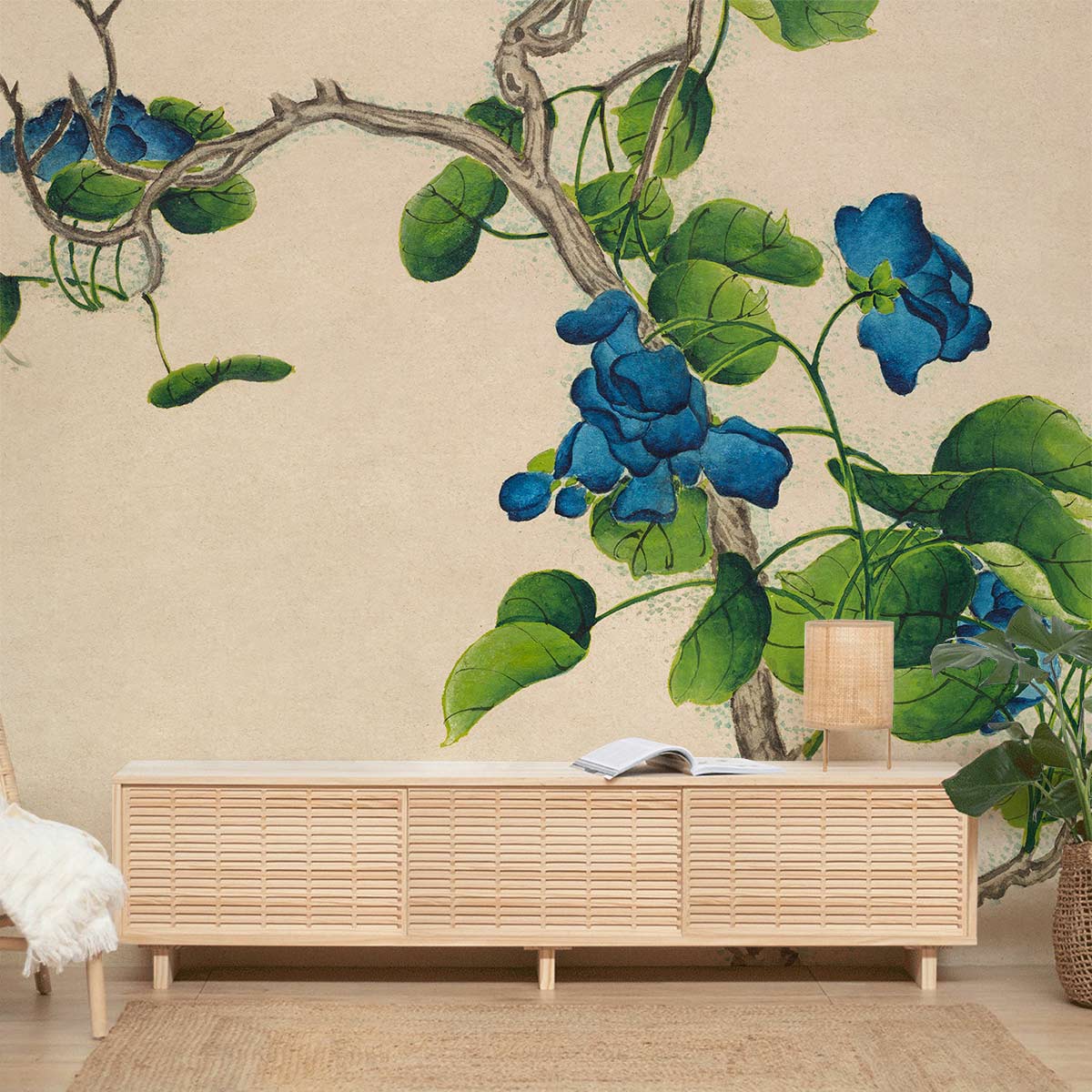 Donnez à votre maison un goût de fraîcheur avec une merveilleuse touche de nature avec ce papier peint mural très satisfaisant de plante grimpante bleue. Ce simple papier peint mural de branche grimpante pour fleurs bleues donnera un sens d'élégance et d'attractivité à votre salon. Les nuances de beige de l'arrière-plan mélangées au bleu et au vert donneront l'impression que l'endroit est plus vaste qu'il ne l'est. Une palette spéciale de fleurs et de feuilles pour un endroit parfait à la maison, un coin de lecture calme et vibrant, et aussi une chambre à coucher relaxante et vivante pour profiter au maximum de votre temps à la maison et rendre chaque moment spécial.