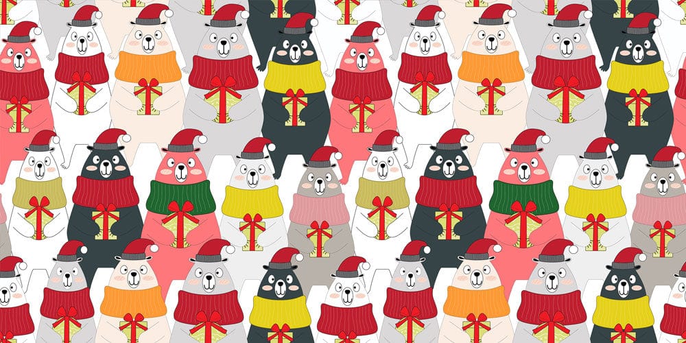 Vous êtes à la recherche d'un cadeau de dernière minute ? Mais vous ne savez pas quoi offrir à votre ami qui a tout mais qui adore les pandas et les ours ? Alors ne cherchez plus car voici la solution parfaite pour vous ! Notre papier peint mural Ours à Noël représente de grands ours adorables qui exhibent leurs petits cadeaux et en sont très fiers. Faites en sorte que votre petit se blottisse contre ce mignon papier peint animalier lorsque vous le collerez sur sa tête de lit et l'accrocherez dans sa salle de jeux.