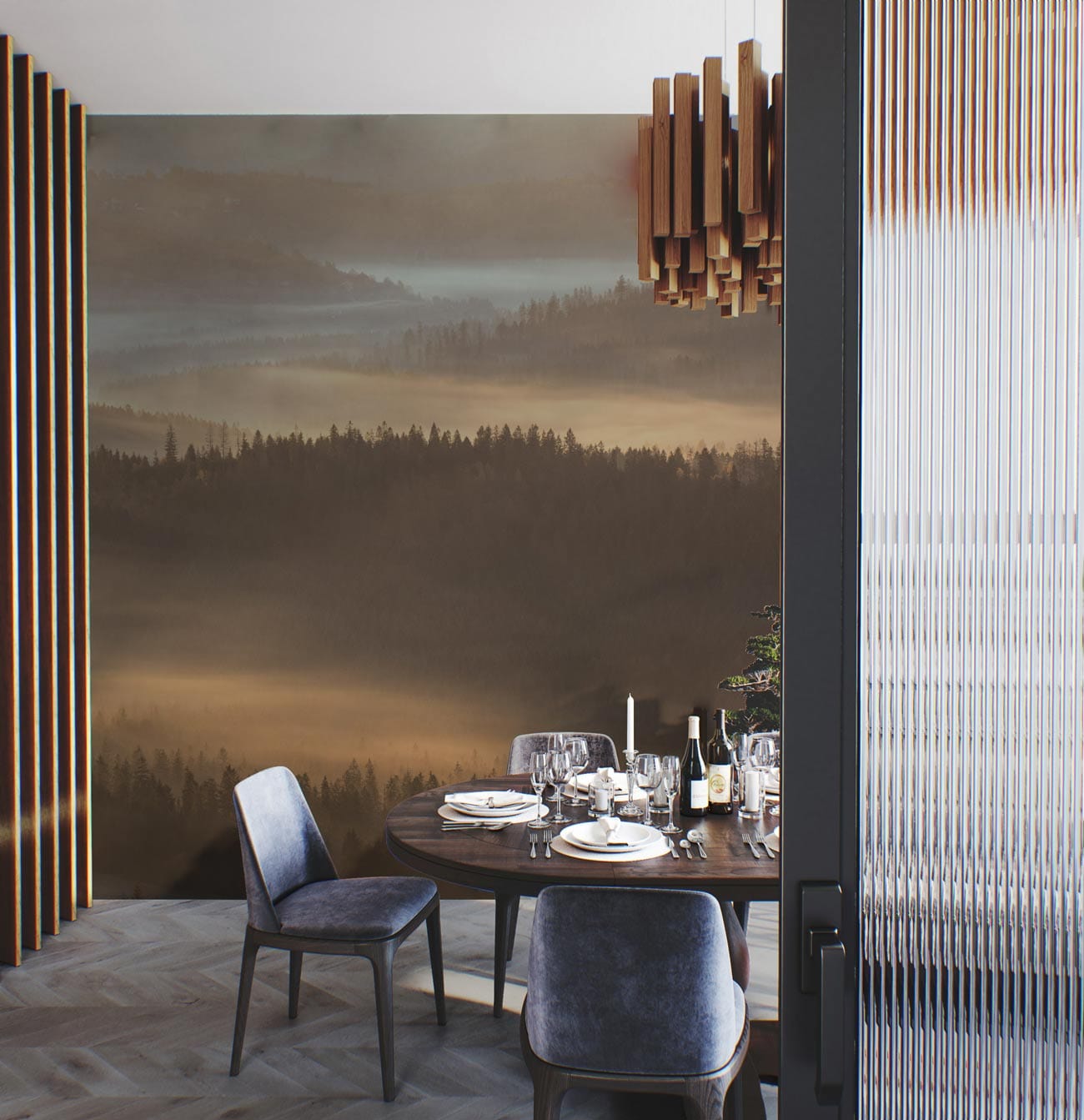 Personnalisez un espace chaleureux et tranquille avec notre Papier peint panoramique Brumeux. Cette peinture murale présente un design de forêt brumeuse à l'aube, avec les arbres et les montagnes lointaines qui brillent dans un soupçon d'orange et de brun sur le ciel gris pâle. Parfaite pour les salons, les chambres à coucher et les autres pièces de votre maison ou de votre bureau où vous souhaitez ajouter un élément artistique qui se démarque du reste, cette peinture murale apporte le monde extérieur dans votre maison, ajoutant de la couleur et de la texture à n'importe quelle pièce.
