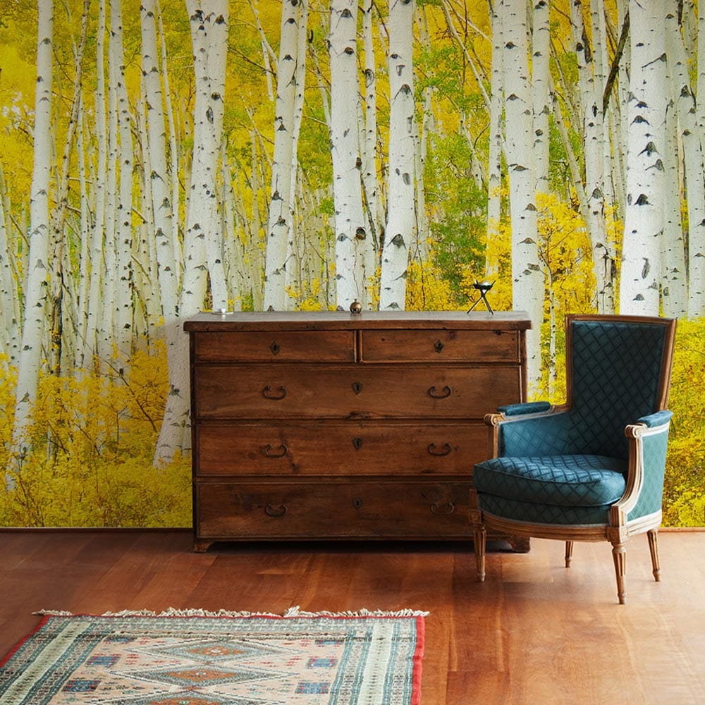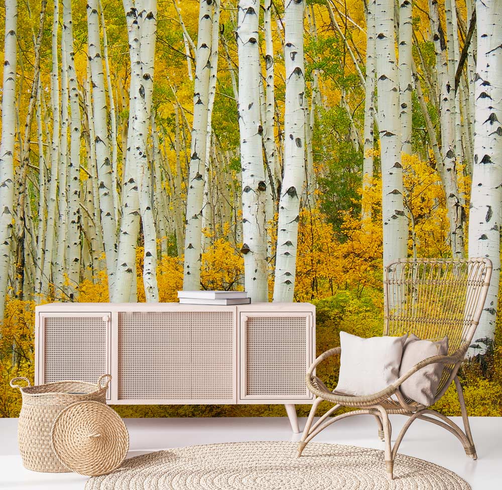 Sophistiqué et élégant, notre papier peint panoramique Bouleaux dorés vous donne une touche de nature au cœur même de votre maison. Nous avons pris des photos réelles d'arbres et les avons améliorées numériquement pour créer une scène réaliste qui capture toute la beauté et la tranquillité de la forêt sans que vous ayez à parcourir des kilomètres depuis chez vous. Les teintes dorées de l'automne se reflètent dans ses petites fleurs colorées dans un paysage qui peut être facilement installé par vous-même avec de la colle à papier peint ou de l'adhésif pour papier peint.