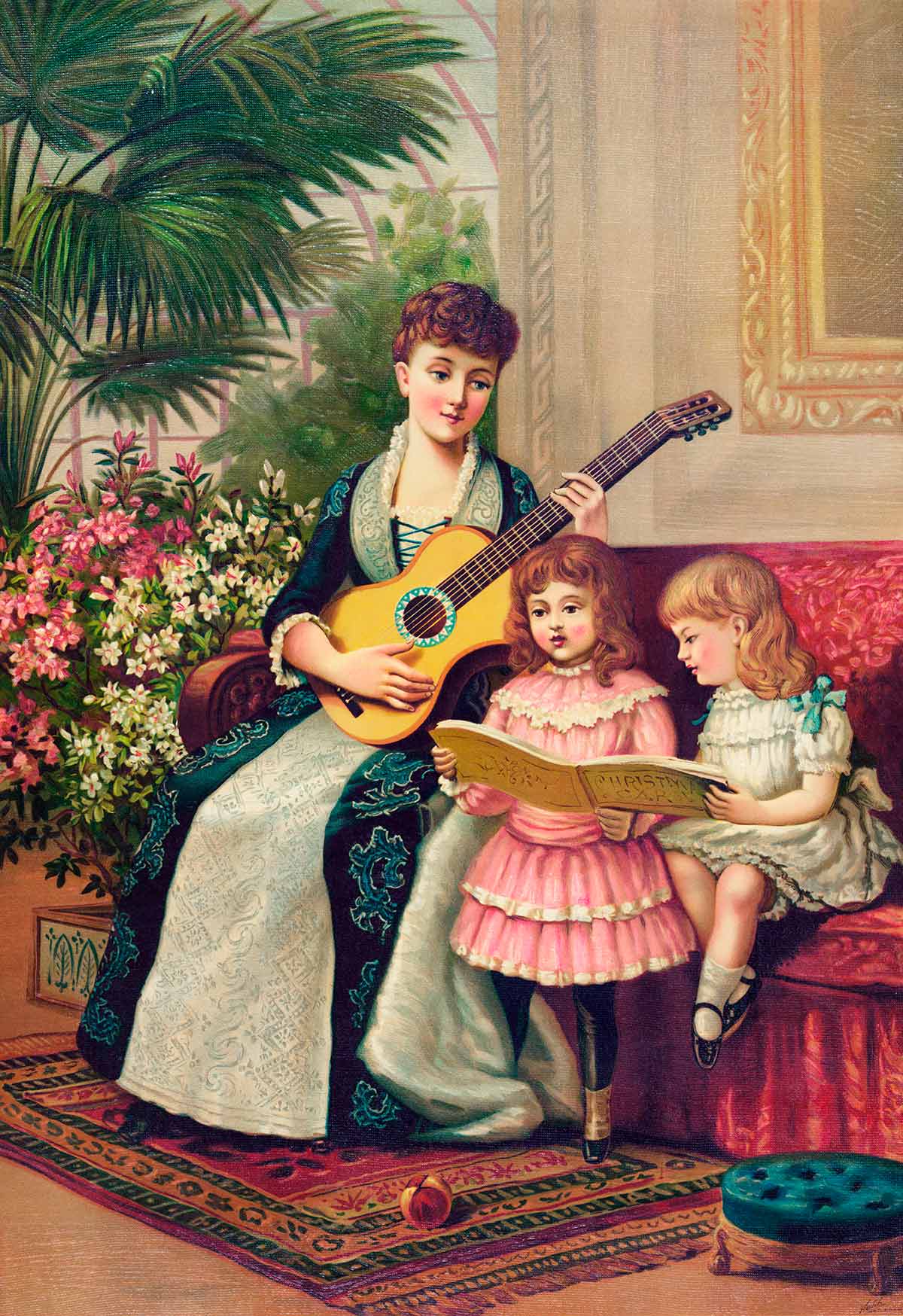 Un papier peint mural de style vintage très classe pour une mère avec ses deux filles répétant pour le chant de Noël. La peinture murale est pleine d'intimité, d'amour et de douceur qui remplira votre intérieur de chaleur et de vibrations très spéciales. Ce papier peint convient parfaitement lorsque vous souhaitez ajouter des vibrations joyeuses avant Noël à votre maison. Associez-le à un mobilier classique et à des décorations vintage pour obtenir les meilleurs résultats et vous verrez que votre maison sera impressionnante et que tout le monde sera étonné par son élégance et son chic.