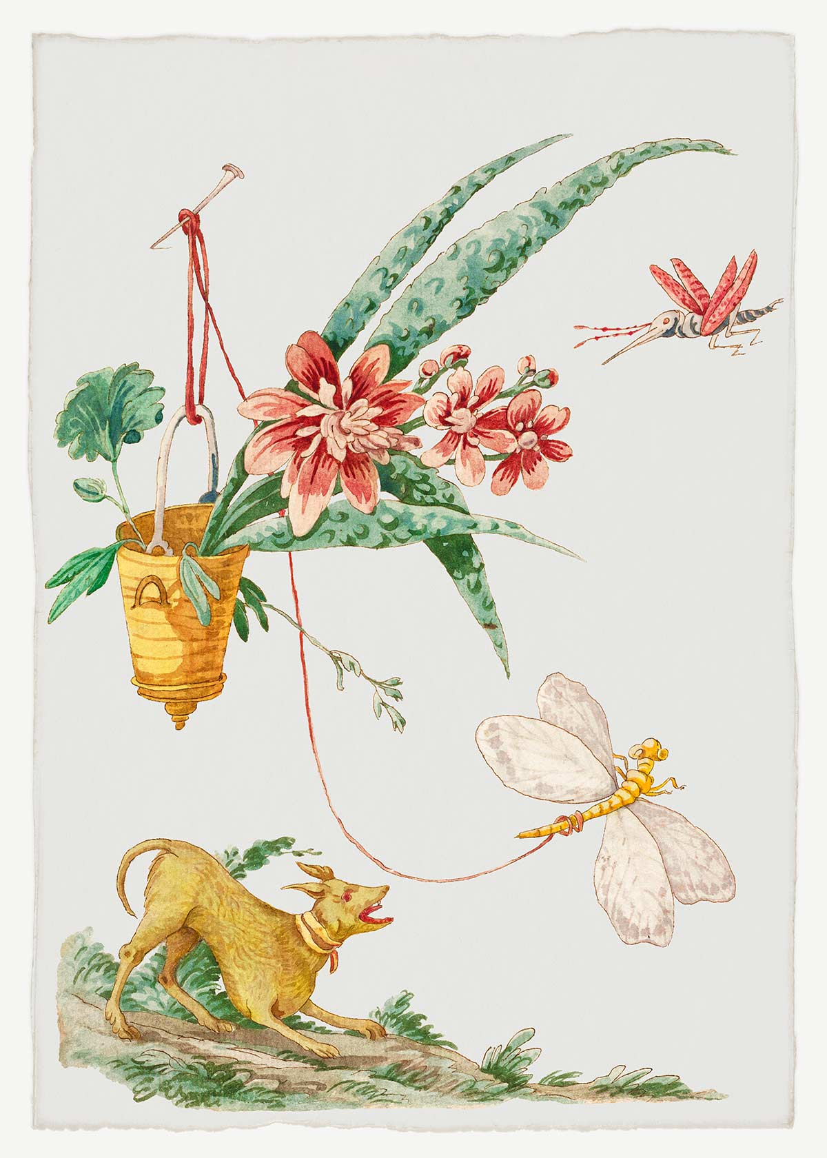 Chien chassant les insectes