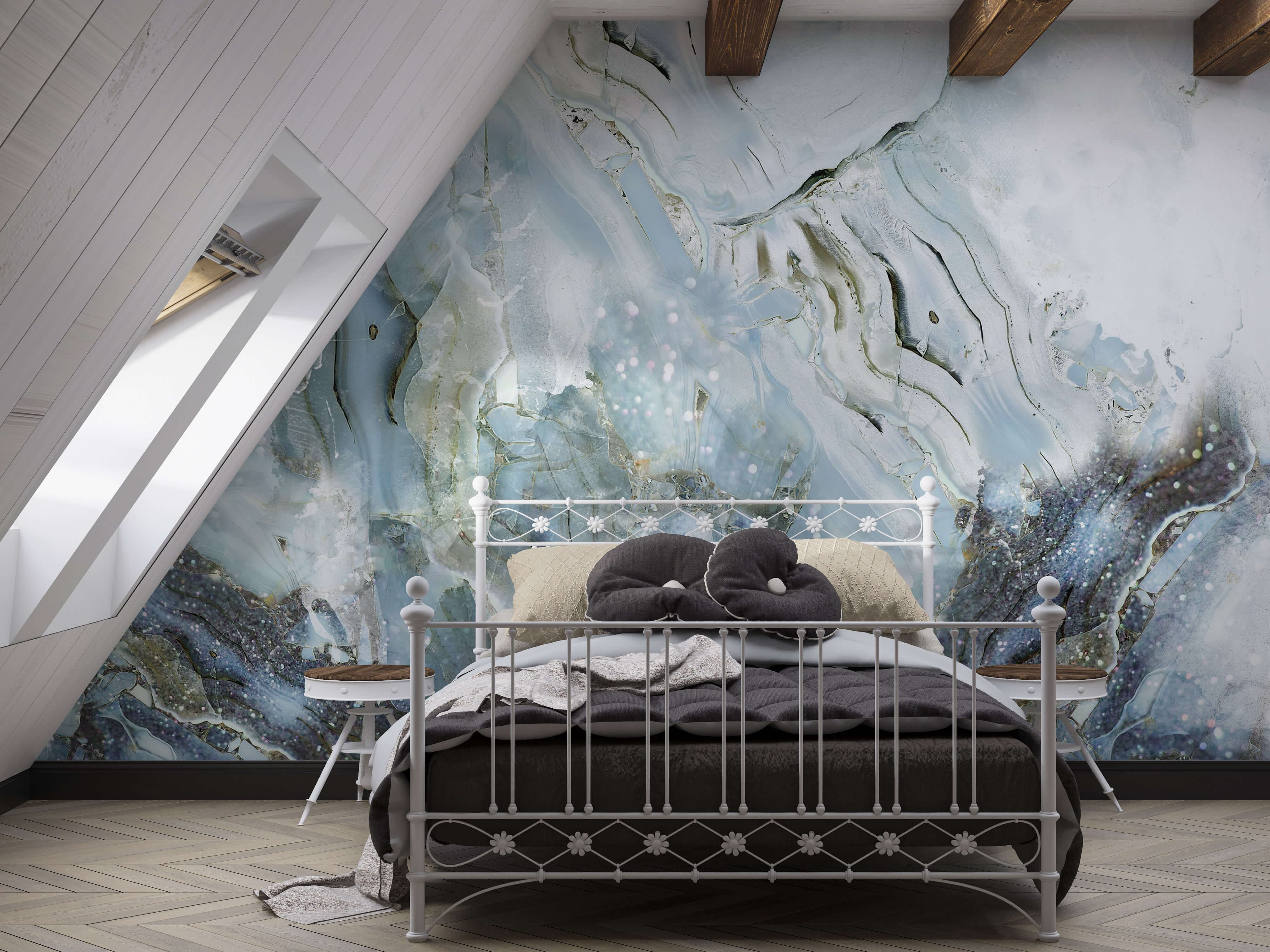 Apportez une touche de luxe à vos murs avec ce papier peint panoramique en cristal doré. D'un design moderne et élégant, le motif de marbre en cristal doré, riche et étincelant, est placé sur un fond blanc, ce qui donne au papier peint mural un aspect net et intemporel. La combinaison de fleurs froides et de blanc cassé animera n'importe quel espace et donnera à votre pièce un sentiment spécial. Ce papier peint est fabriqué à partir de matériaux naturels et a une finition luxueusement douce, parfaite pour la chambre, le couloir ou le salon.