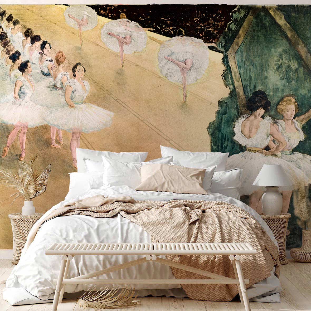 Les danseurs de ballet peuvent être des motifs uniques en papier peint mural. Très peu de gens peignent cet aspect. Cette peinture murale représente des danseurs de ballet en train de danser et nous fait nous sentir gracieux et à l'aise. Si vous aimez l'art et que vous poursuivez vos rêves comme eux, vous pouvez y trouver du réconfort et aimer et profiter de votre vie à partir de maintenant. Grâce à cette peinture murale, vous pouvez créer un paradis pour votre adolescente qui a les mêmes passe-temps comme le ballet ou qui s'accorde le mieux avec la salle de danse.