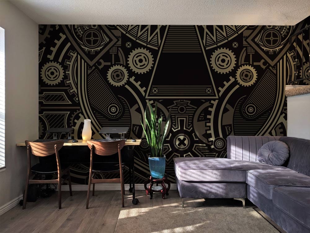 Préparez-vous avec notre papier peint mural Mechanical Gear ! Cette décoration murale complexe sur le thème des engrenages combine une variété d'engrenages, de rouages et de roues qui tournent pour donner du mouvement à votre pièce. Un design unique avec un rendu d'artiste de détails d'engrenages clairs et translucides, vous pouvez transformer votre espace de vie en une caverne d'homme élégante avec ce papier peint mural qui fera tourner les têtes dans le département du style. Disponible dans de nombreuses tailles différentes, ce papier peint est parfait pour tous les murs de votre maison !
