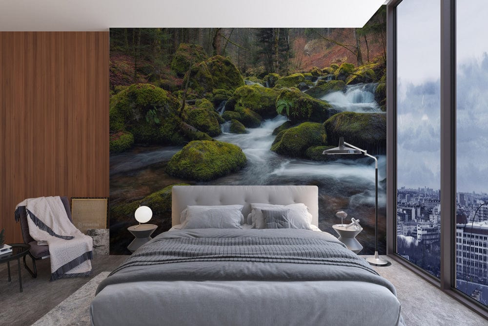 Laissez-vous aller à votre côté sauvage avec notre Papier peint panoramique Ruisseaux de la forêt. De ses arbres détaillés à ses rochers roulants en passant par son cours d'eau, cette scène forestière apportera la beauté de la nature dans votre propre maison. Ce magnifique papier peint mural capture la beauté sereine de la nature, avec un ruisseau qui coule au milieu d'arbres et de formations rocheuses. Les nombreuses nuances de vert, de bleu et de brun feront ressortir les tons terreux de n'importe quel décor et créeront un environnement réconfortant et accueillant.