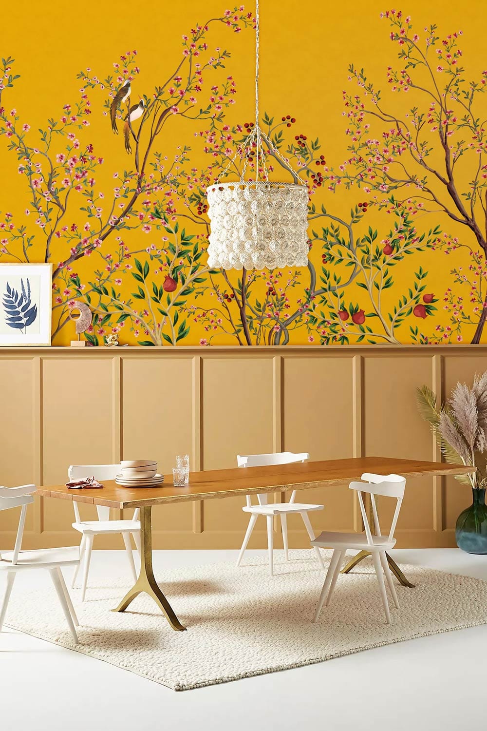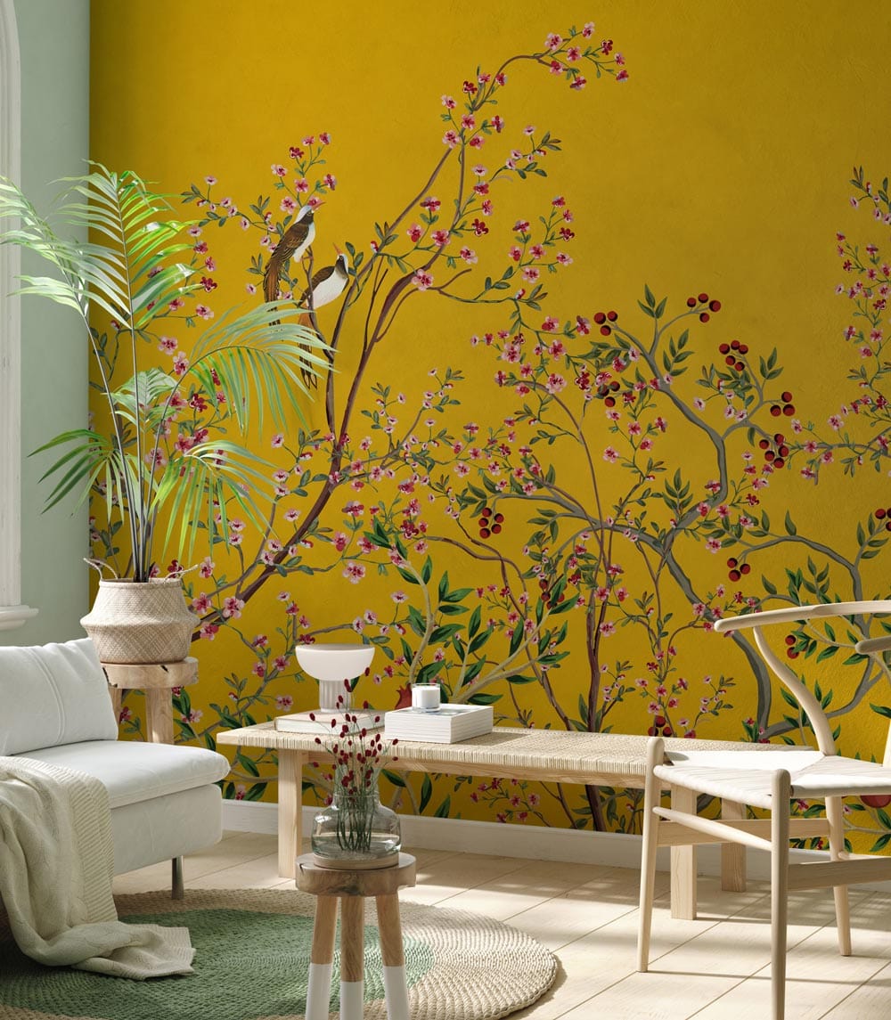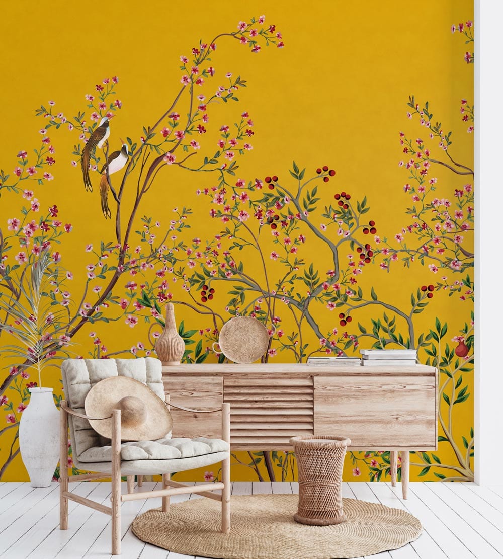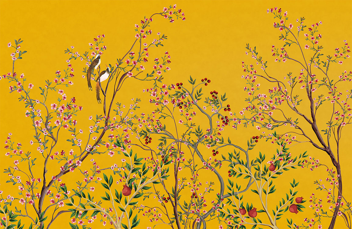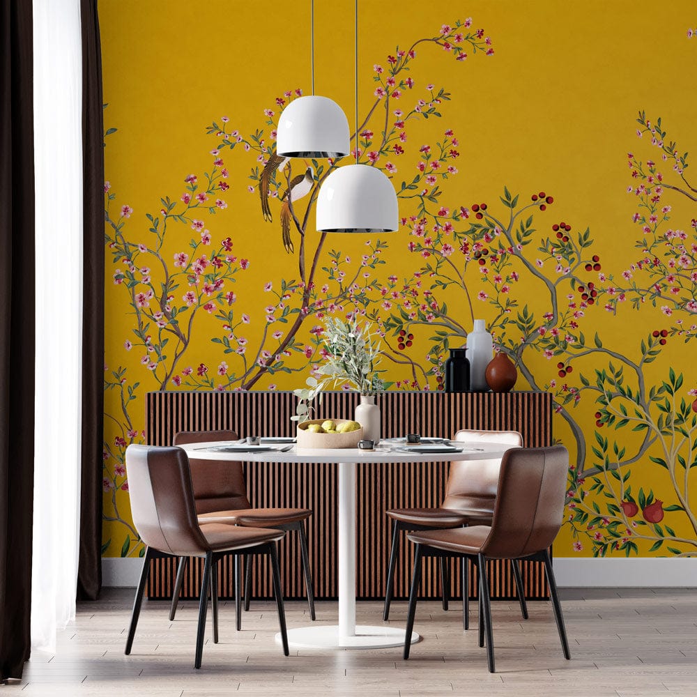 Nous vous proposons ce papier peint mural Bloomy Pomegranate Tree pour donner de la vie à vos murs. Une excellente façon d'avoir la fraîcheur du printemps à tout moment de l'année, ce papier peint est un cadeau parfait pour vos amis qui aiment les décorations d'intérieur pour rendre leur maison plus chaleureuse et confortable. Le grenadier de ce motif est entouré de délicates fleurs de pivoine, avec une couleur de fond jaune moutarde pour créer une sensation de fraîcheur. Créez une atmosphère paisible et naturelle dans votre chambre à coucher en ajoutant dès aujourd'hui cet accent naturel à votre décoration intérieure.