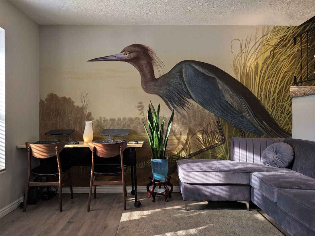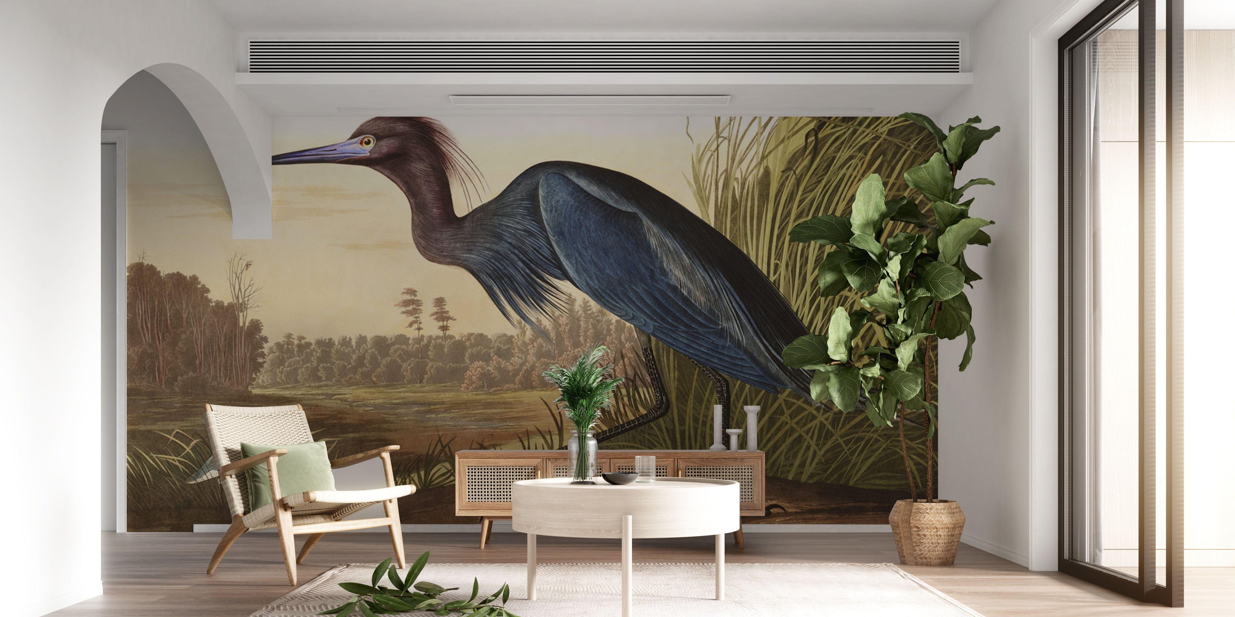 Cette peinture murale Blue Heron est une décoration idéale à utiliser comme arrière-plan. Cette belle et incroyable peinture d'un grand héron bleu dans la forêt sera parfaite pour les intérieurs de votre maison. Rendu intéressant avec une atmosphère naturelle et une décoration murale rafraîchissante parfaite pour n'importe quel jour et nom affable: créatures avec des scènes vertes.