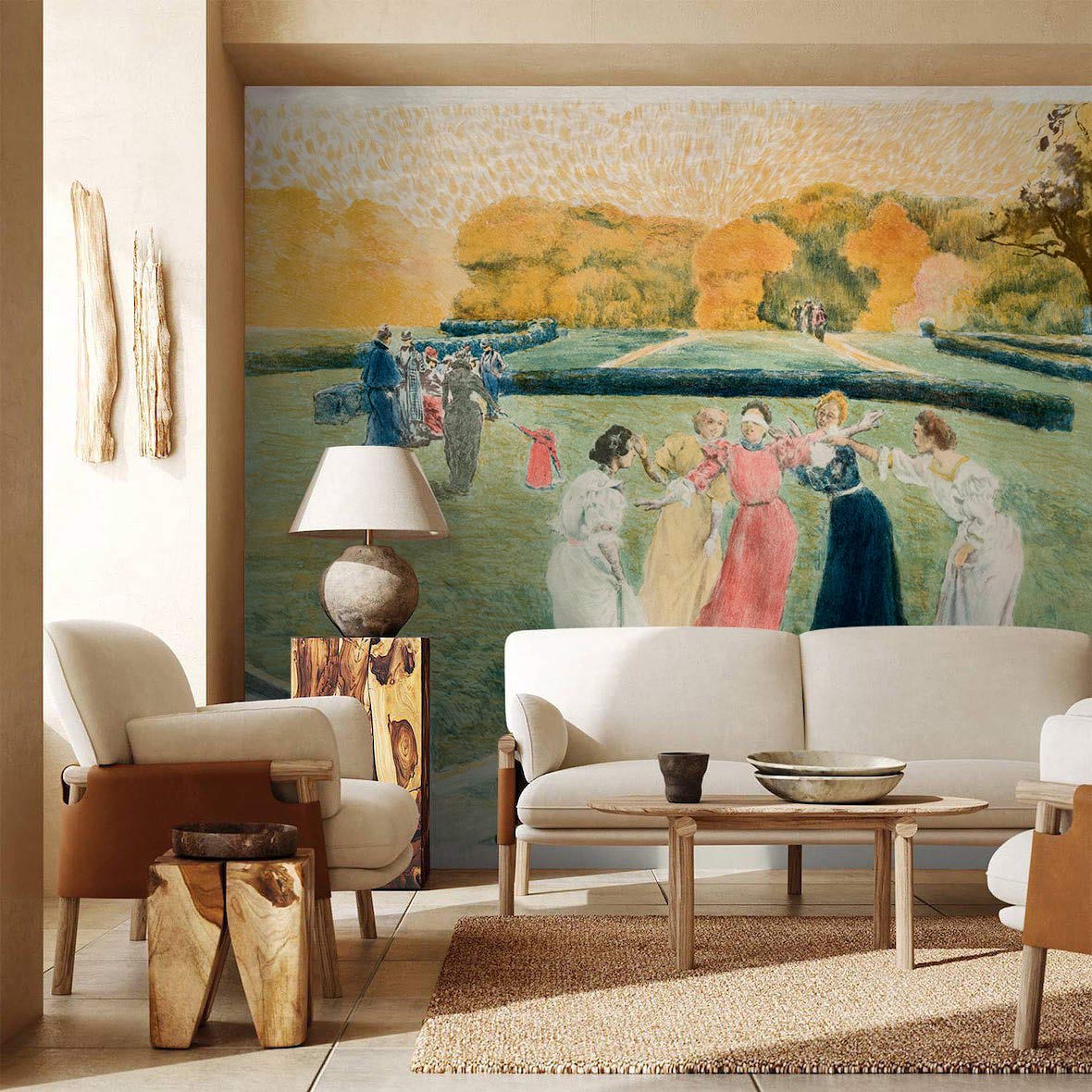 Apportez notre murale Le Colin-Maillard dans votre espace avec une atmosphère chaleureuse et détendue. Après une journée de travail, rafraîchissez-vous avec cette peinture murale et profitez de la vie heureuse que vous vivez. Affichant différentes couleurs, assortissant le jeu de jardin, créant le style décontracté que vous voulez, cette peinture murale utilise pleinement la vue commune et devient la vie idéale que les gens veulent poursuivre. Un design qui correspond vraiment aux personnes qui subissent une grande pression.