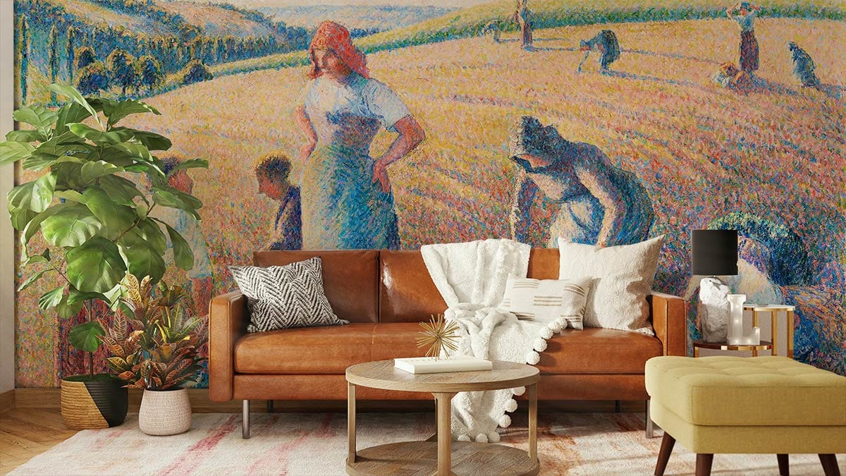 Ce célèbre tableau Les Gleaners a été illustré par Camille Pissarro. À première vue, les peintures de Pissarro sont très ordinaires, sans l'enthousiasme et la mélancolie de Van Gogh, ni l'ensoleillement et la positivité de Gauguin, mais après l'avoir longuement regardée, on peut progressivement voir les caractéristiques de Pissarro en silence. La correspondance des couleurs représente une sorte de vue calme sans explication supplémentaire, mais nous pouvons saisir le contenu.