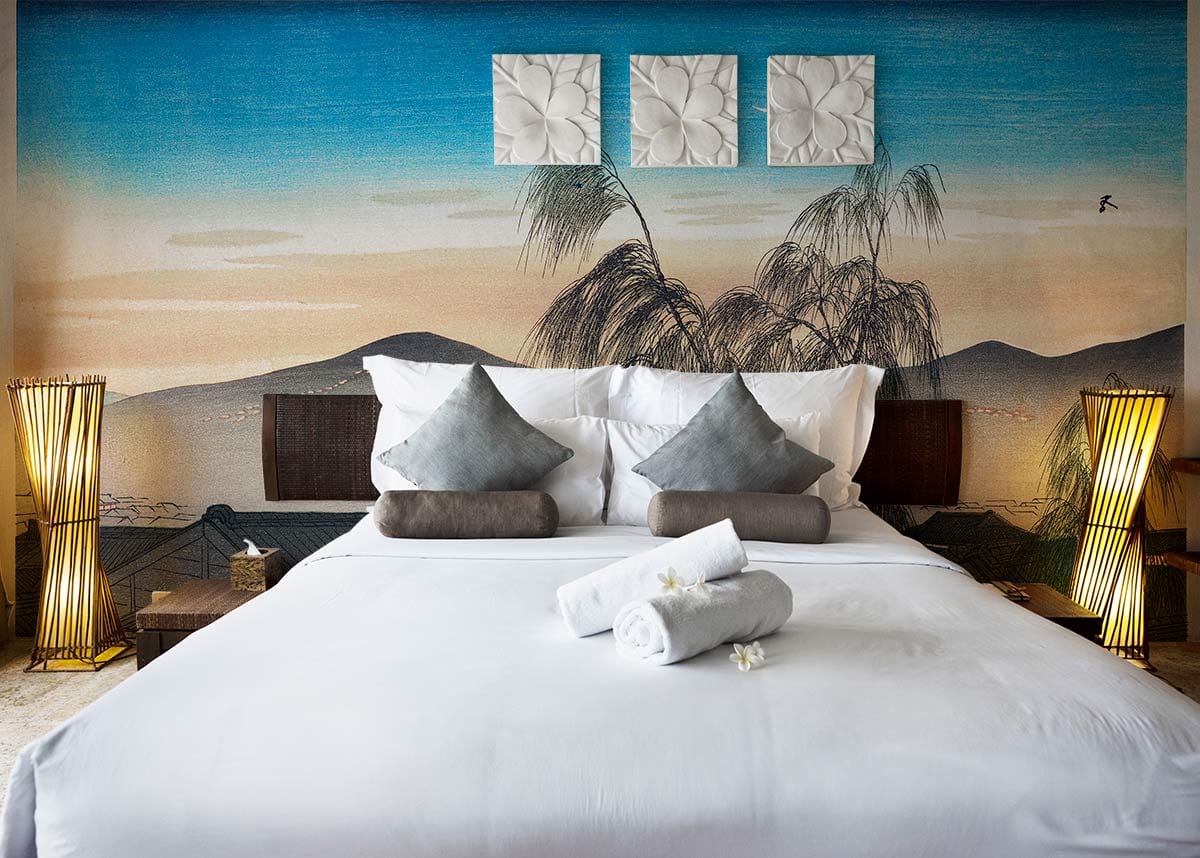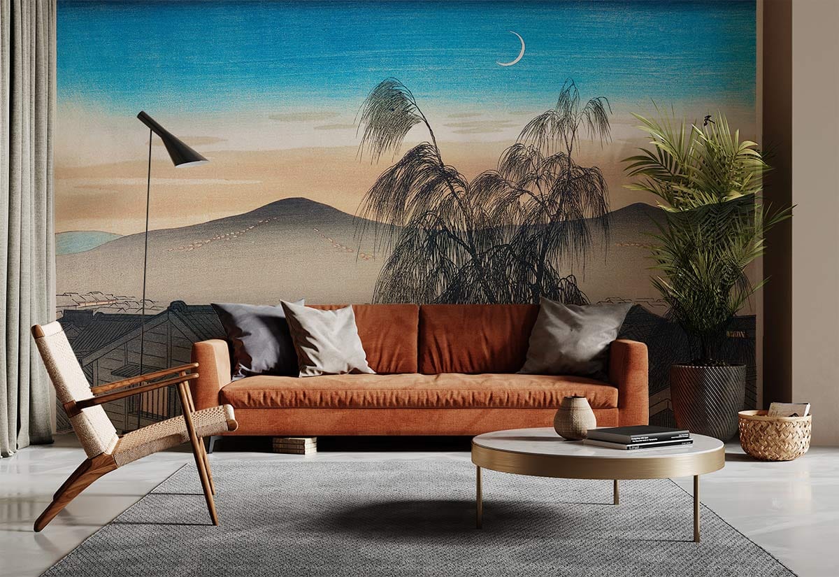 Conçu avec une lune lumineuse, une montagne, un saule et une maison, ce papier peint peint apporte une scène nocturne dans votre espace. La solitude et le soulagement viennent à l'esprit lorsque vous voyez cette peinture murale. Il y a un pouvoir magique que vous aurez différentes émotions lorsque vous vous trouvez dans différentes situations, peut-être de l'espoir ou du chagrin, qui dépend de ce à quoi vous pensez. Amusez-vous à donner vie à la nouvelle conception de votre pièce.