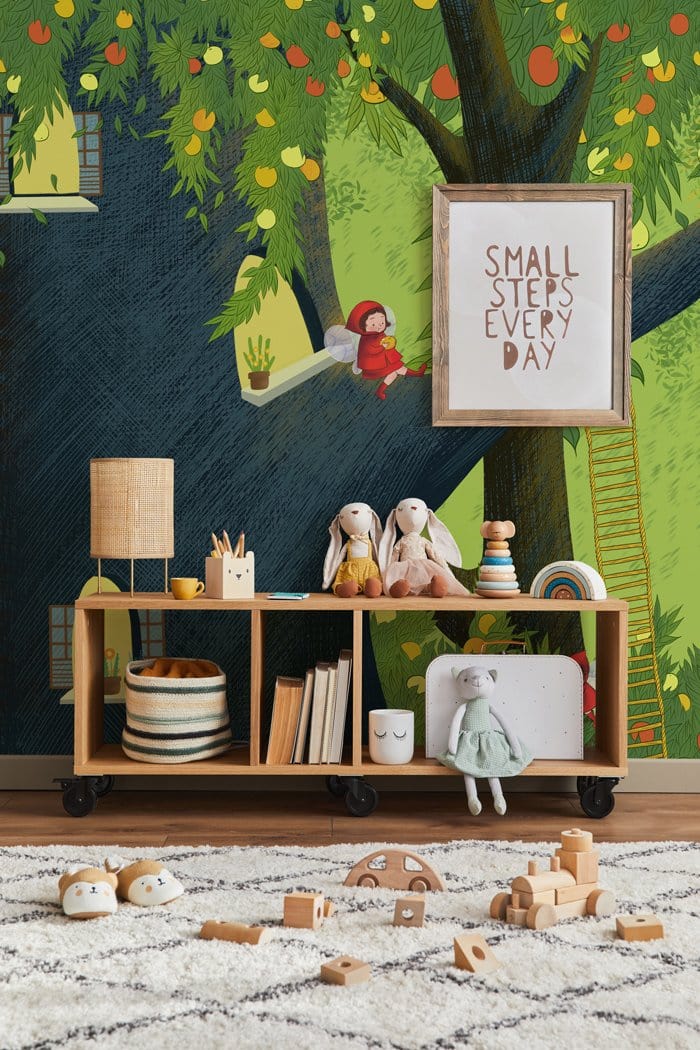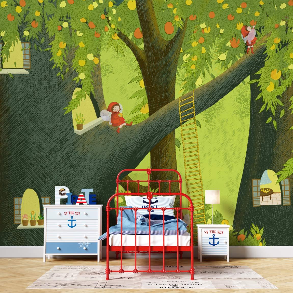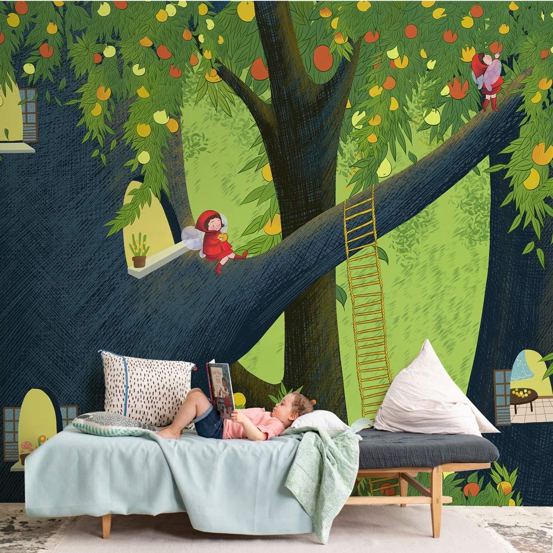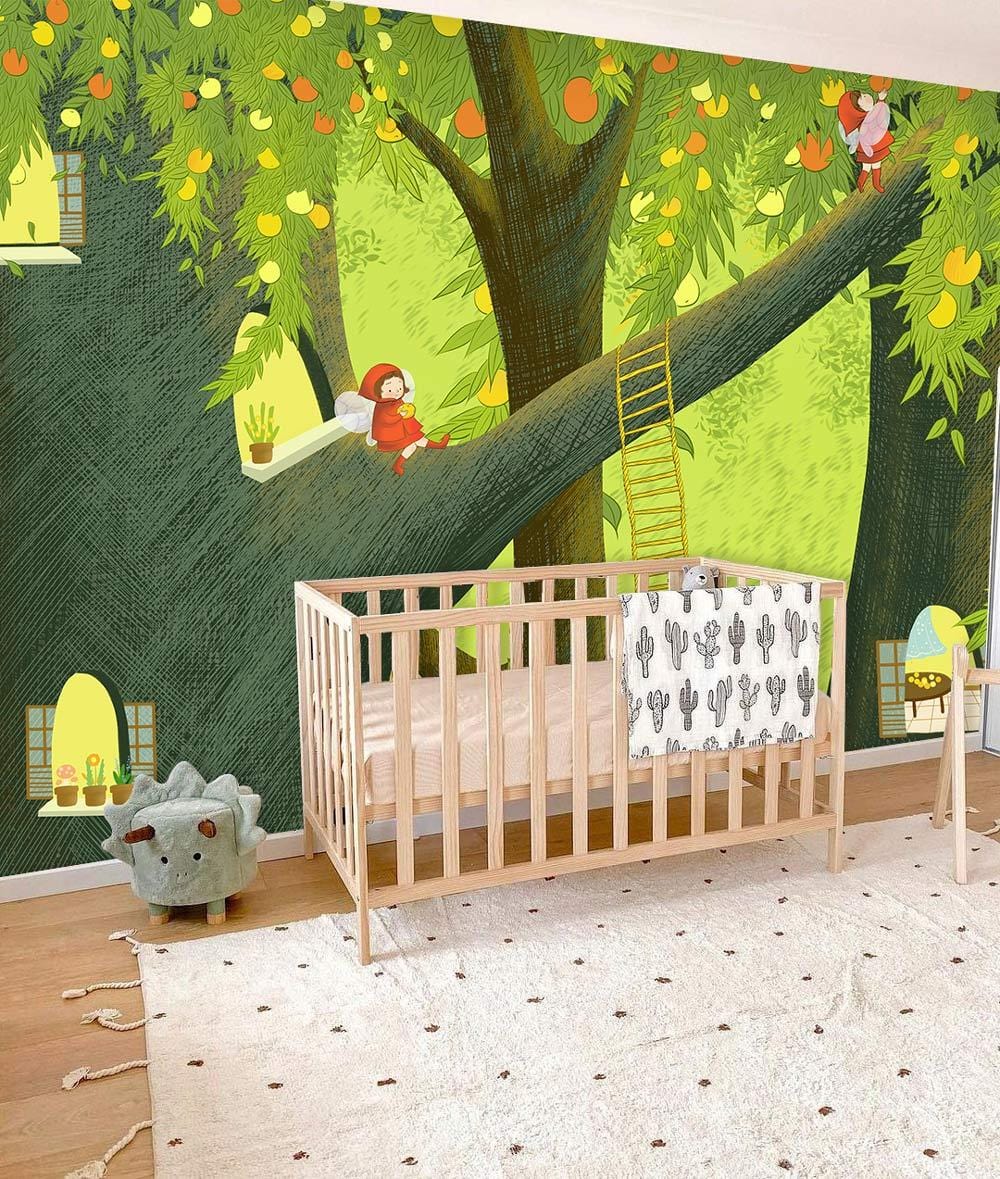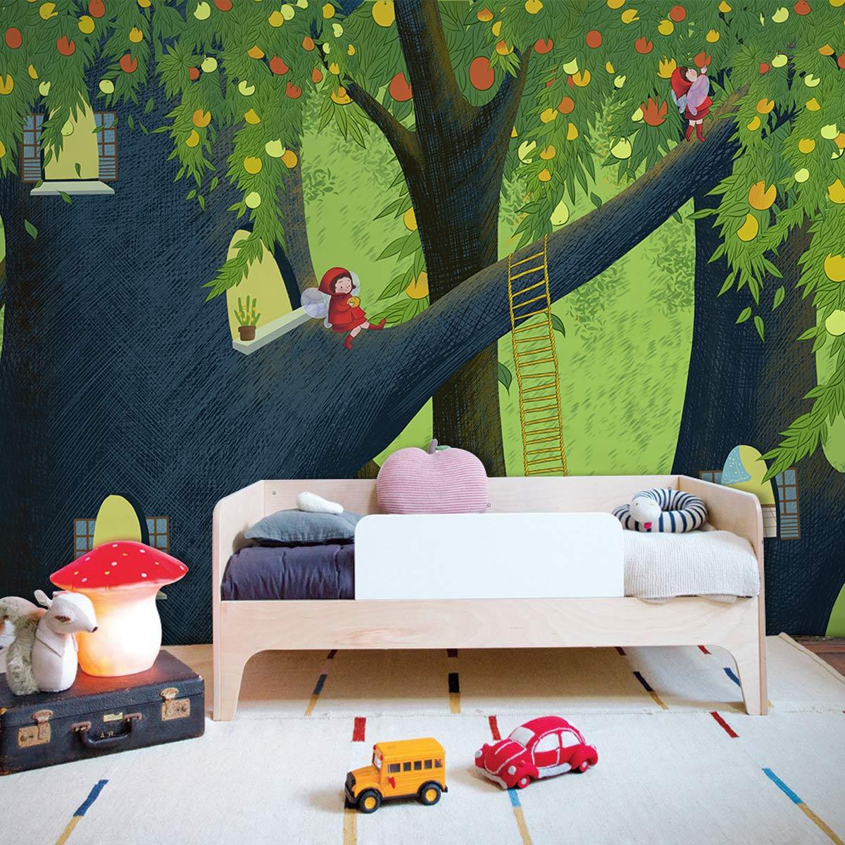 Ouvrez l'imagination de vos enfants avec cette charmante murale de papier peint. Regardez les éléments des contes de fées dans ce décalque mural mignon complet avec une petite fille assise sur une grande maison d'arbres. Situé dans un ton vert vif et naturel, il est facile pour les yeux et parfaitement adapté à la salle des crèches de votre enfant. Associez-le à n'importe quelle couleur vive ou meuble pastel sera parfait.