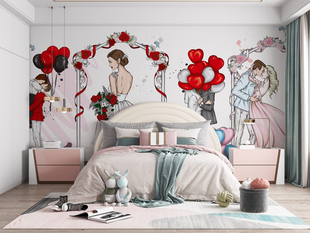 Le jour du mariage est le jour le plus mémorable et le plus sacré pour chaque mariée. Ce Papier peint panoramique Sweet Wedding vous donnera l'impression d'assister au plus beau mariage de vos rêves ! Transformez votre chambre aujourd'hui avec cet adorable papier peint mural représentant des couples de mariés romantiques, une mariée éblouissante, et tout ce qui concerne un mariage parfait. Accrochez cette peinture murale de mariage pour apporter un sentiment de romantisme et de style à votre maison. Parfait pour les jeunes mariés, ce design romantique vous transportera à l'époque où l'amour était un peu plus innocent.