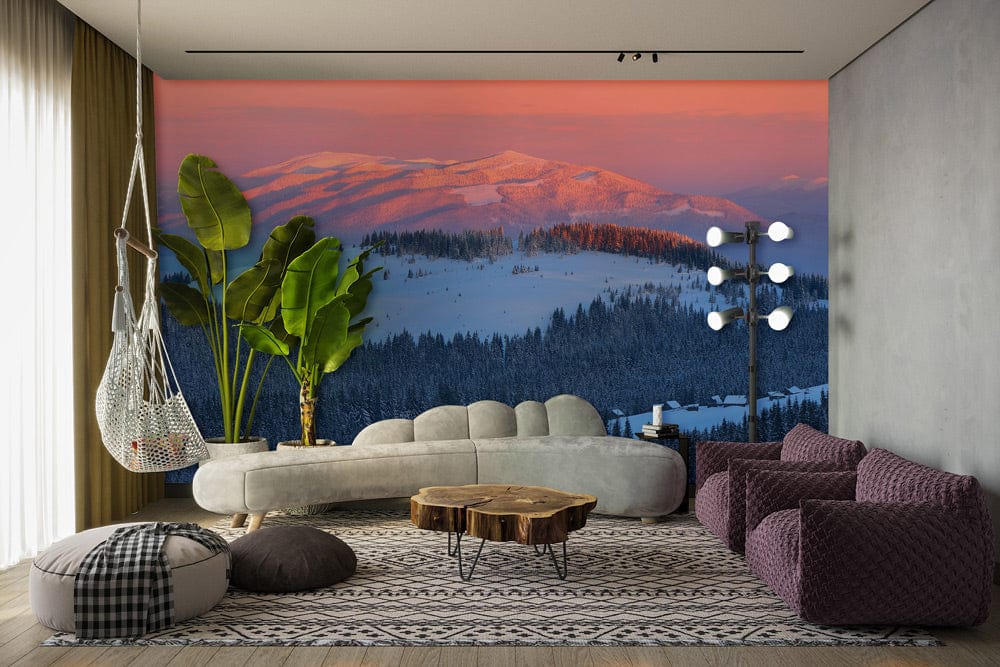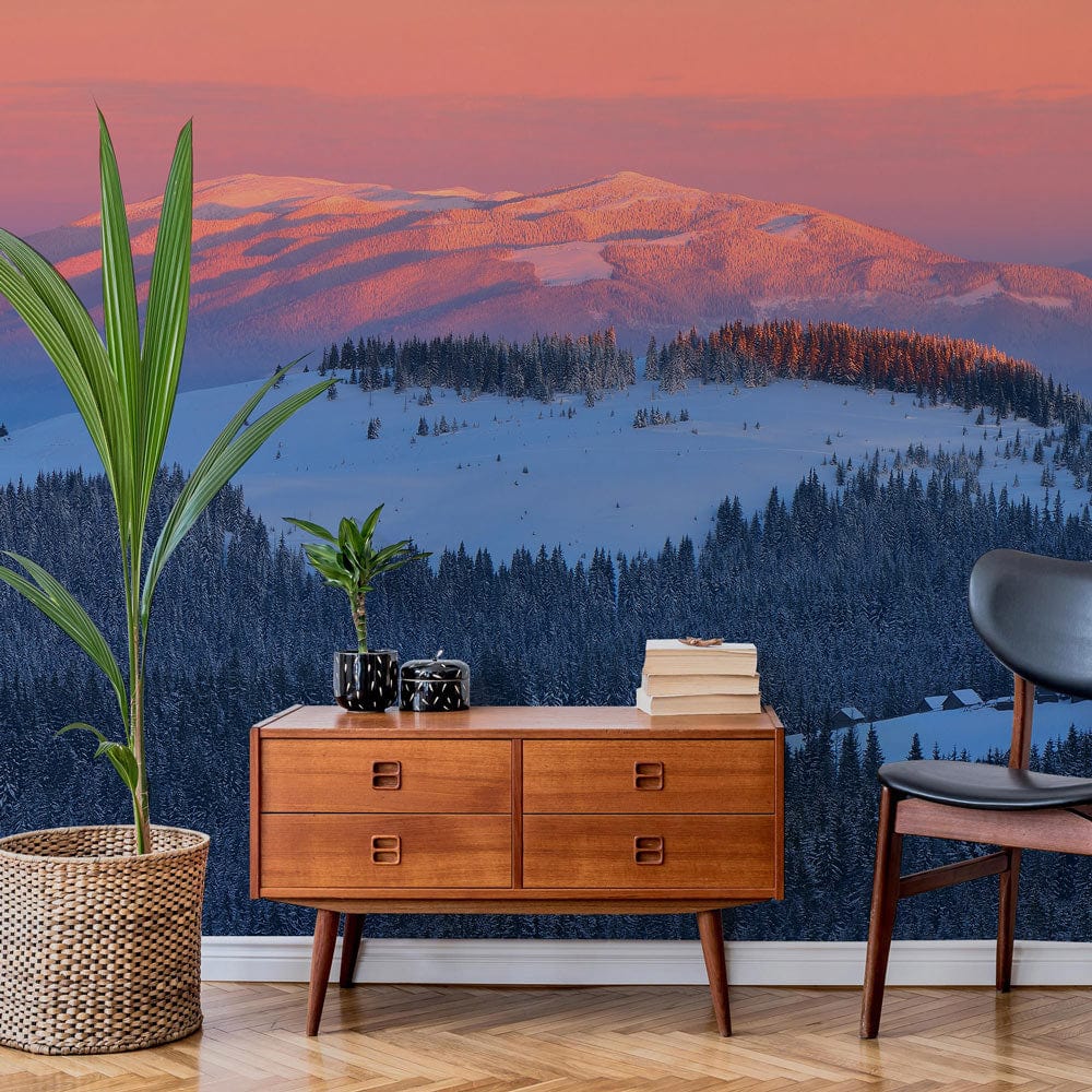 Cette charmante peinture murale crée une scène de montagne enneigée de rêve qui peut aider à créer un décor moderne invitant et détendu. Ce papier peint de style pays des merveilles hivernales présente de magnifiques montagnes, des arbres enneigés et un ciel bleu de rêve pour produire un papier peint mural unique, détaillé et en couleur, représentant une montagne enneigée de rêve. Avec ses teintes étonnantes, nettes et vibrantes, cette décoration murale apportera chaleur, confort et paix à votre pièce. Son design unique ajoute de l'intérêt à n'importe quel mur, et il est facile à appliquer et à enlever.
