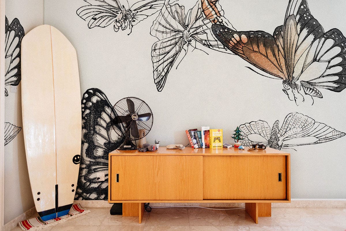 Plongez dans le monde merveilleux des papillons avec ce papier peint d'aspect naturel. Avec une combinaison d'éléments réalistes et artistiques, notre Papier peint panoramique Papillons apporte la beauté de la nature à n'importe quelle pièce de votre maison ou de votre bureau. La toile murale représente une collection de papillons noirs et blancs sur un fond blanc, avec des accents orange supplémentaires. Cette adorable peinture murale est un excellent moyen d'apporter une touche de sanctuaire à vos murs tout en dégageant une vibration délicate et fantaisiste pour égayer votre pièce.
