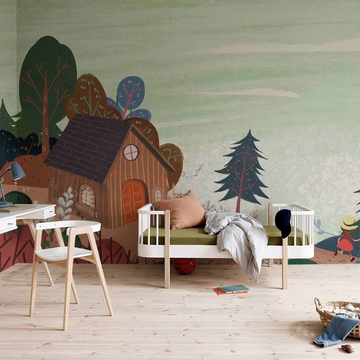 Surprenez vos enfants avec un joli design pour leur chambre au début de l'année et laissez-les aimer leur chambre peu ordinaire et aimer encore plus leurs affaires. Cette conception de papier peint mural de la petite maison est l'une des belles peintures de notre collection pour enfants qui vous aidera à choisir un style différent qui rendra vos enfants heureux et excités de bien dormir et de jouer dans leur espace. La peinture murale est si colorée et énergique. Les nuances sont si calmes qu'elles donnent un effet charmant. Vous pouvez également utiliser ce papier peint pour une chambre d'enfant avec des lumières claires pour un effet calme et doux.