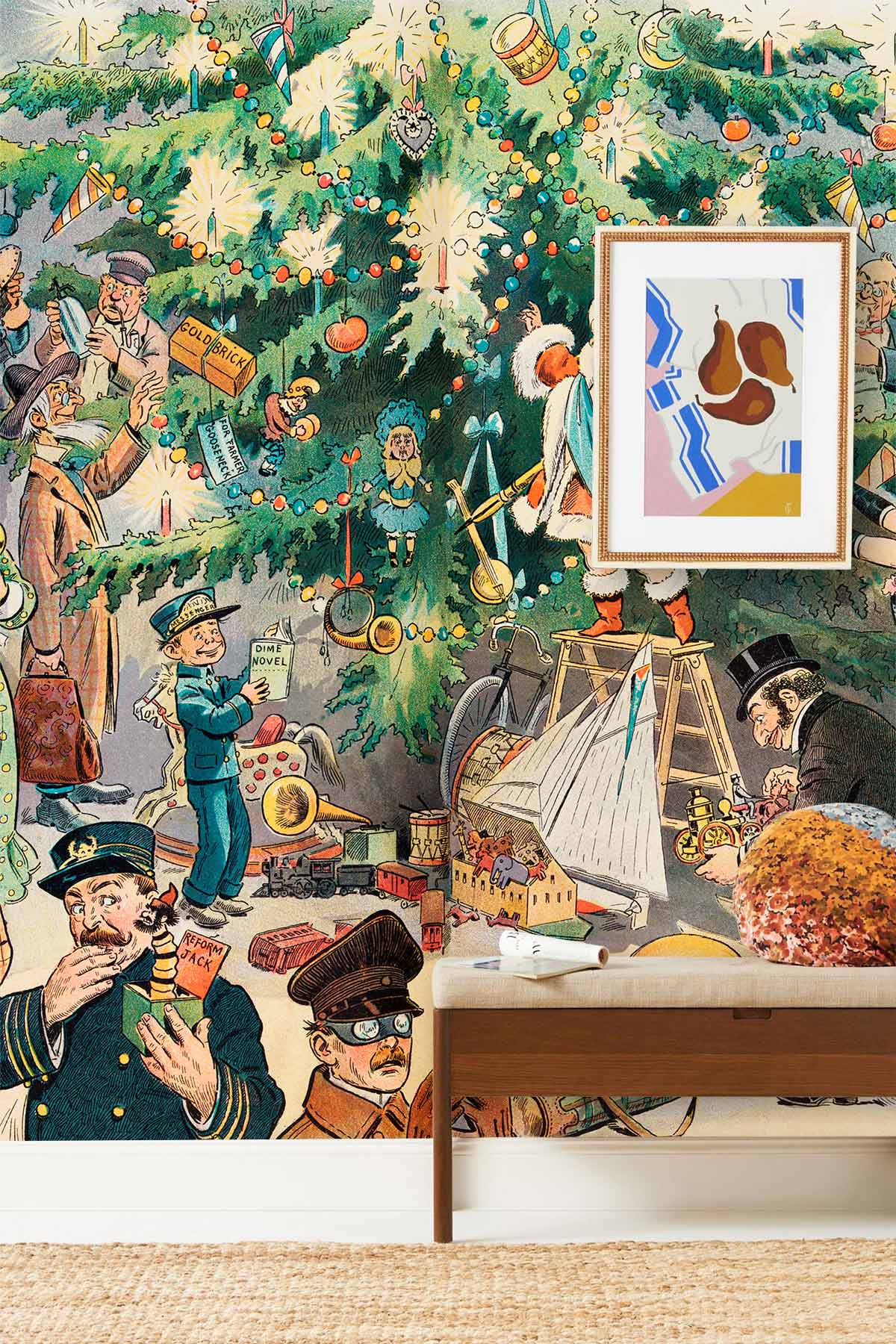 Le Père Noël semble avoir mis tous les cadeaux sous le même arbre cette année. Donc, tout le monde reçoit le sien en même temps. Ce papier peint mural est un portrait très classique et très cool à la fois. C'est amusant de décorer votre maison avec toutes ces différentes expressions de visage pour chaque personnage. Ce papier peint va rendre vos enfants très heureux de leur maison pendant la période de Noël, et vous aidera à améliorer leur créativité et leur imagination. Vous pouvez commencer à créer des histoires et à donner des noms à chaque personnage, ce qui sera très amusant et rendra la pièce merveilleuse, unique et pleine de joyeuses vibrations de Noël.