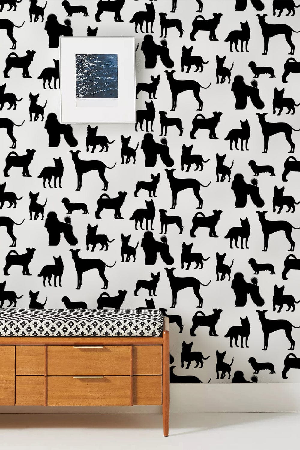 Laissez votre chien montrer sa race préférée grâce à ce papier peint mural du plus bel effet. Un design amusant et fonctionnel présentant des silhouettes de différents chiens, cette peinture murale ajoutera du caractère à n'importe quelle pièce de votre maison. La petite dose de couleur combinée aux tons noirs et blancs crée une sensation de calme et de détente tout en ayant un impact sur votre décor. Parfait pour regarder la télévision et lire un livre dans le salon, la cuisine ou même dans la chambre à coucher, cet imprimé mignon et amusant apportera la joie des chiens dans votre maison.