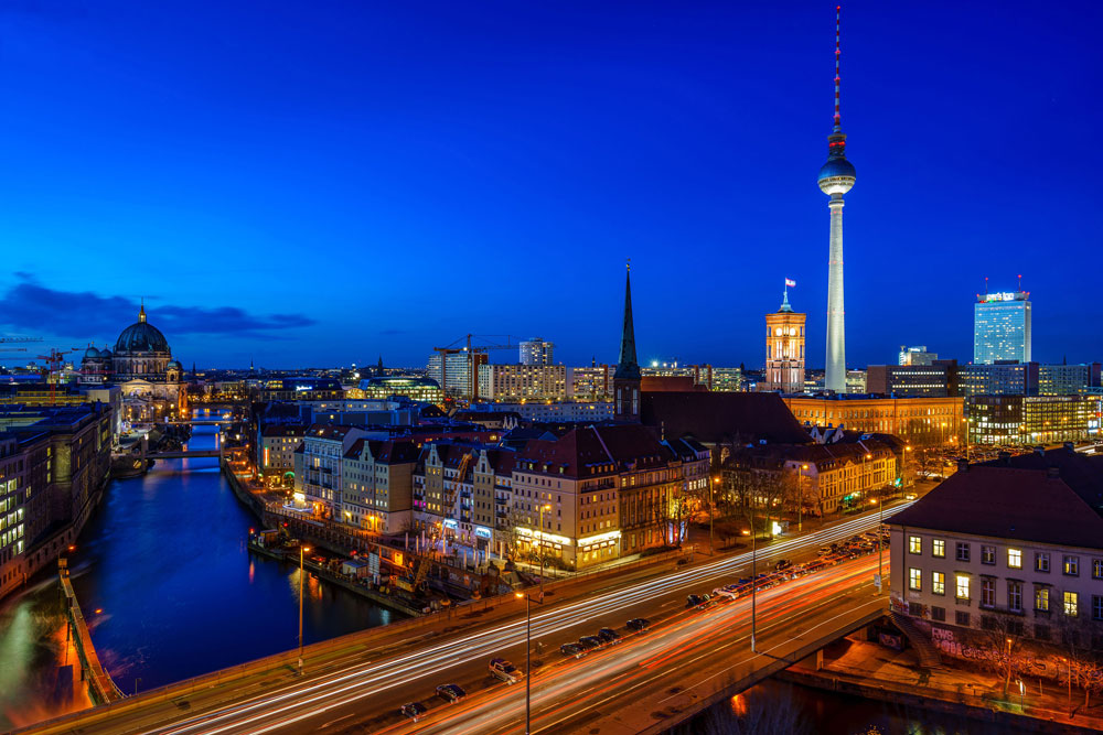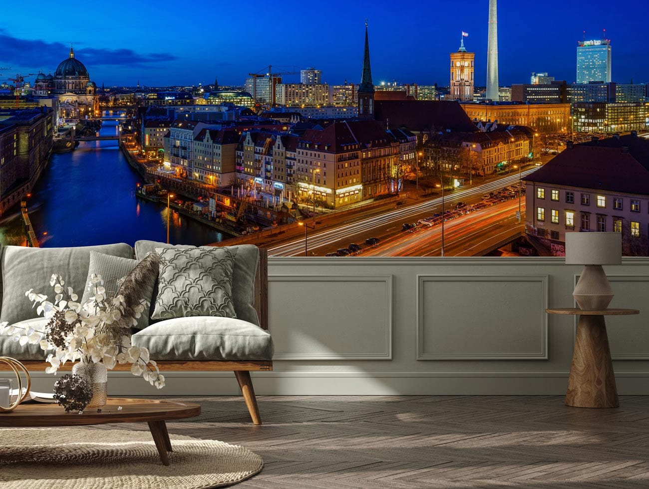 Regardez le coucher et le lever du soleil sur Berlin avec ce Papier peint panoramique de la Tour de Berlin, qui représente la célèbre tour de la ville. La lumière se reflète sur son extérieur en acier inoxydable, créant une silhouette étonnante que vous pouvez apprécier de loin. Avec la vue imprenable de la tour de Berlin la nuit, ce papier peint est idéal pour toute pièce qui a besoin d'être embellie. La vue magnifique de la tour transformera votre maison en un véritable espace de rêve. Apportez la magie de la nuit dans votre chambre à coucher avec ce papier peint mural !