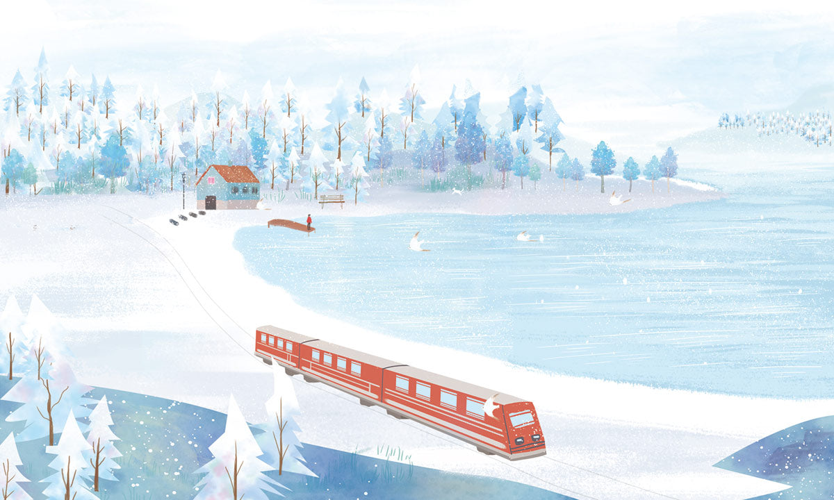 Vivez l'histoire équitable où tout est parfait et brillant avec notre peinture murale de conception d'un train dans un fond d'écran enneigé qui fera votre Nouveau-né T remorquez si vous définissez une pépinière. Le design est si doux et rend la chambre si confortable et relaxante. Avec des lumières lite chaudes, l'endroit sera si gentil et vos enfants adoreront leur chambre et dormiront également. Ce design est également parfait si vous avez une pépinière pour les enfants où vous voulez pour eux un bel endroit où ils peuvent apprendre et jouer. Utilisez des décorations lite et des rideaux blancs et des meubles pour plus de contraste et de calmer des effets brillants.