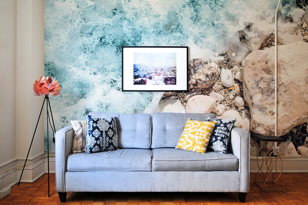 Créez une ambiance océanique dans n'importe quelle pièce avec ce papier peint panoramique Vagues et pierres. Avec ses vagues classiques s'écrasant sur des pierres océaniques, ce papier peint mural ajoutera une touche artistique à n'importe quel espace tout en complétant votre décor. Avec ses bleus et ses verts qui rappellent l'océan, ce papier peint mural de style côtier transmet la tranquillité de la mer à vos murs et ajoute un effet apaisant à votre maison ou à votre espace commercial.