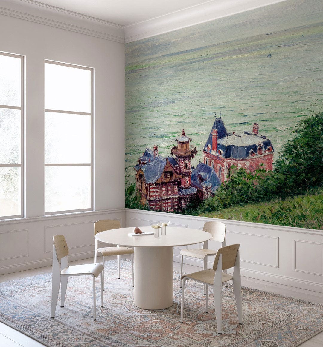 Le papier peint mural Villas at Trouville est une magnifique peinture murale représentant la mer et le front de mer français dans un jardin romantique. Cette villa de bord de mer à la fois élégante, contemporaine et ancienne est nichée dans une rue tranquille du célèbre village de pêcheurs de Trouville. Ce papier peint mural capture l'atmosphère idyllique de cette retraite en bord de mer, avec ses ruelles pittoresques et ses jardins feuillus tranquilles. Ce motif est idéal pour ceux qui cherchent à ajouter un peu de style français à leur décor.