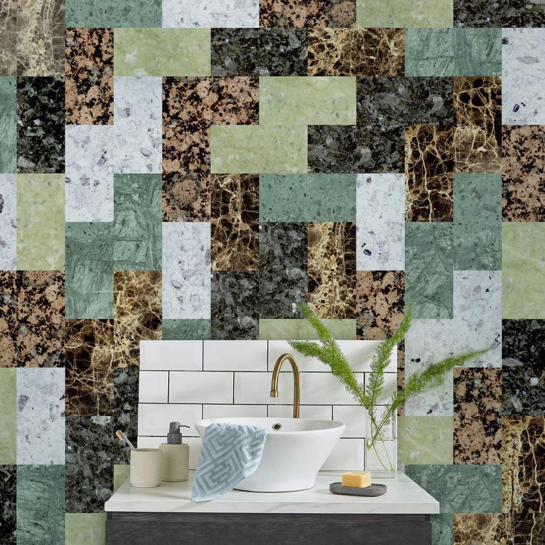 Vous pouvez donner à votre pièce un magnifique coup de jeune avec notre Papier peint panoramique Multi Green Marble. Dans les peintures murales et les tapisseries traditionnelles, le marbre vert était considéré comme un symbole de fertilité, de nature et de croissance, dégageant luxe, puissance et éternité. Réalisé à l'aide de plusieurs carreaux de marbre vert de différentes teintes avec des nuances de noir et de brun, l'effet est défini par la légèreté et le volume de vos murs. Apportez la beauté antique de l'Égypte dans votre maison avec ce motif classique de carreaux de marbre.