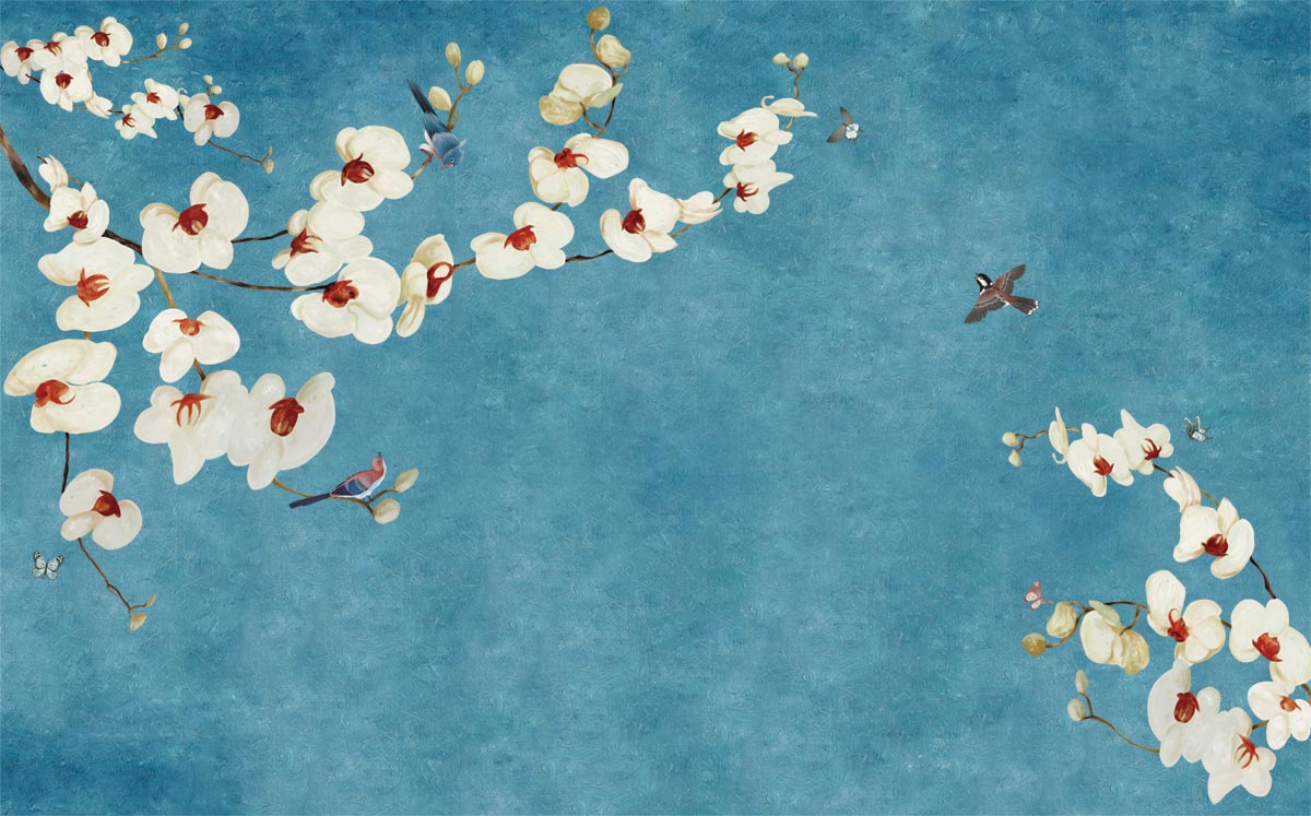 Ayez un espace de détente béni chez vous avec l'un de nos papiers peints muraux modernes et chics. Ce fond bleuâtre et brumeux avec l'oiseau qui vole, les fleurs blanches et les papillons, tous ces éléments donnent à ce papier peint un aspect plus riche et un thème plus relaxant à ajouter à n'importe quel endroit. Vous impressionnerez vos invités avec cette peinture murale si vous l'utilisez dans votre salon ou dans la salle principale de votre réception et ils adoreront l'atmosphère si relaxante qui règne dans votre maison. Vous aurez également une chambre à coucher au look relaxant avec cette peinture murale, des rideaux blancs et un tapis blanc. Votre maison sera si lumineuse et si moderne avec ce design simple.