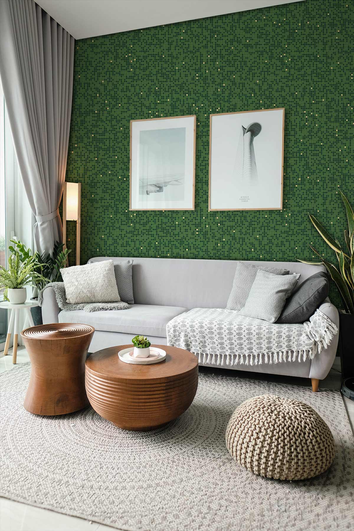 Découvrez un tout nouveau monde avec notre papier peint mural mosaïque vert foncé. L'utilisation de la mosaïque associée à une palette de couleurs vertes profondes et sombres donnera à la pièce une sensation exotique et ensoleillée. Le design et la couleur de bon goût en font un ajout attrayant à votre intérieur et une façon fraîche et unique de transformer votre décor. Ce papier peint mural est le moyen parfait d'ajouter de la vie à un salon ou à une chambre à coucher qui conviendra certainement à tous les styles.