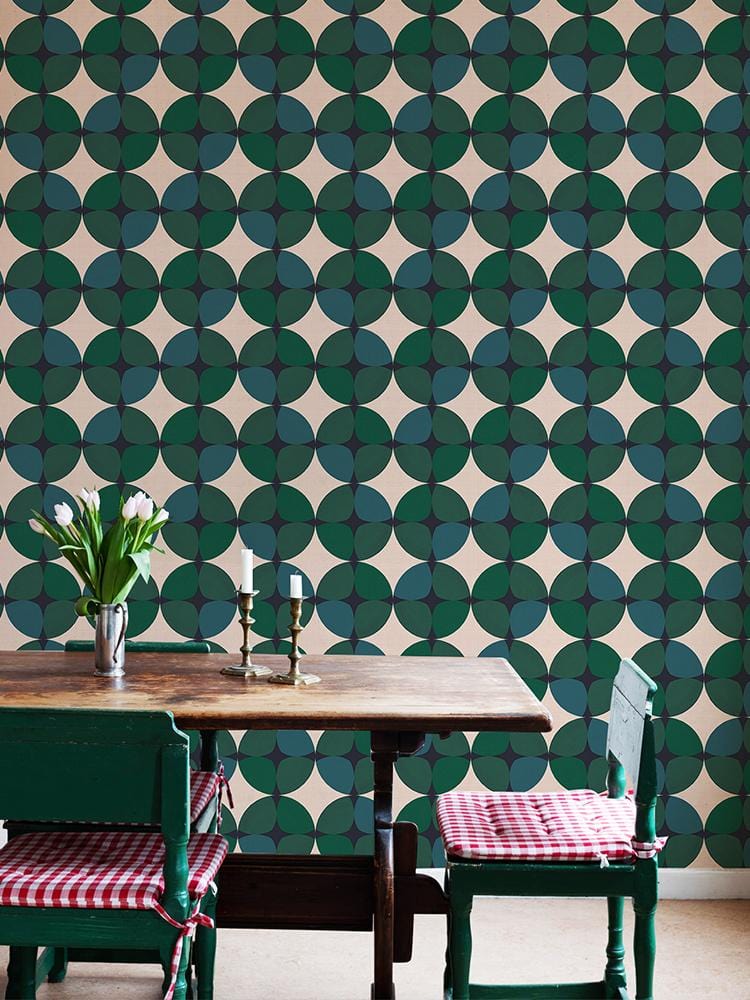 Si vous recherchez une murale de papier peint élégant et petit de cercle qui peut s'adapter à votre espace intérieur et à vos décorations d'art, alors cette murale de papier peint de motif de cercle répété est votre choix parfait. Ce revêtement mural conçu avec trois couleurs: vert tropical, vert de pin et jaune d'automne, ce qui créera sûrement une atmosphère confortable et paisible pour votre espace.