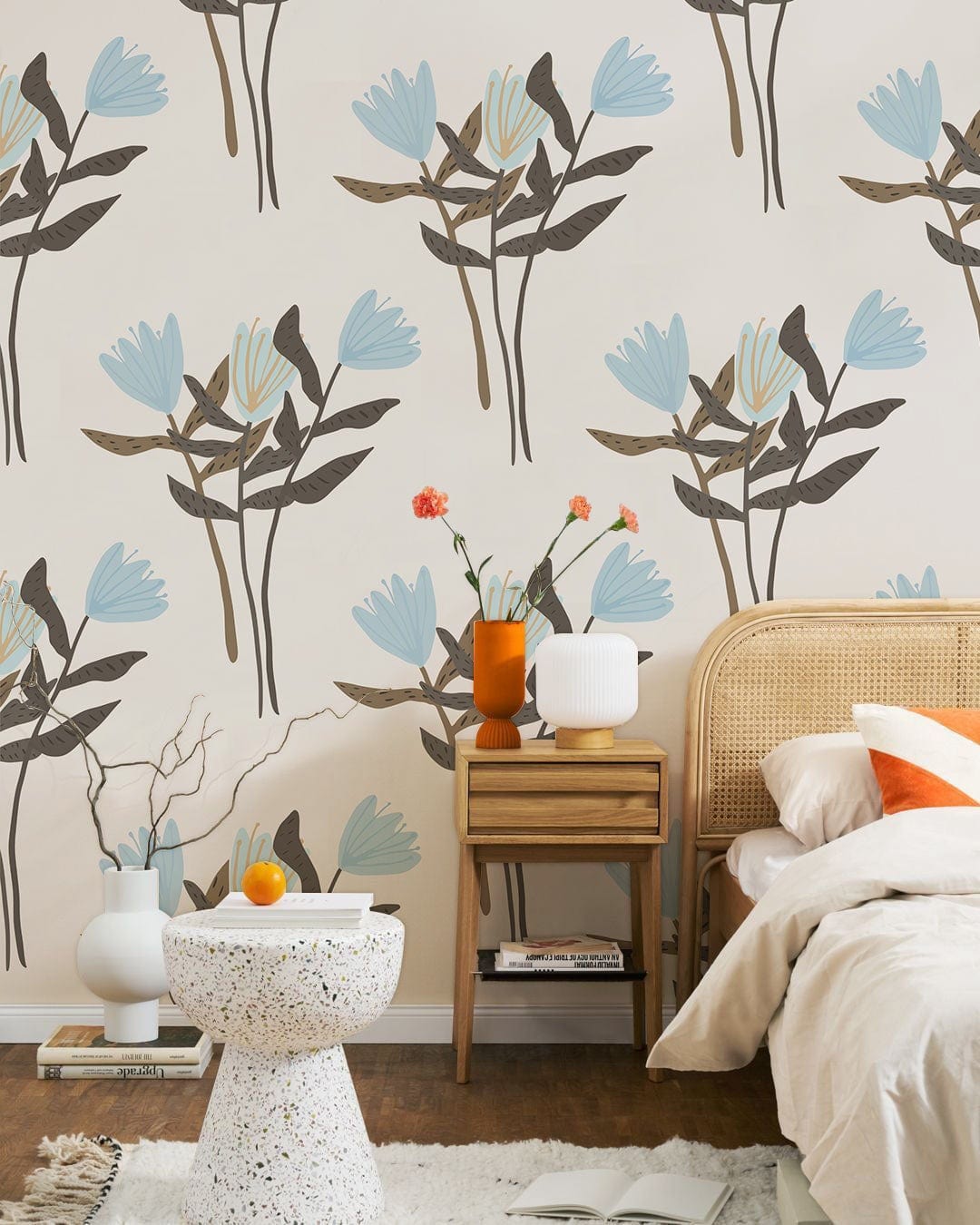 pour ceux qui aiment la simplicité et fleurs, celles qui ont un goût unique et élégant. Nous vous disons que votre goût est si parfait et nous vous aiderons à obtenir ce qui correspond à votre goût. Ces fleurs éblouissantes sont si simples et belles pour décorer votre salon, votre chambre ou votre chambre pour enfants et votre bureau aussi. C'est l'un des conceptions de cartes Joker qui s'adaptent à n'importe quel endroit et donnera un aspect différent avec différents styles. Le bébé lite bleu à l'arrière-plan et les nuances entières de bleu du papier peint mural le rend si rafraîchissant et si moderne, vous pouvez compléter le look avec des décorations blanches ou des tapis bleu marine, le contraste des couleurs vibrera votre place avec votre place avec modernité.