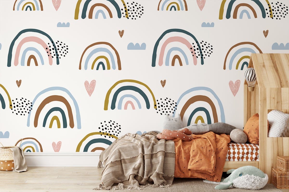 Décorez votre Girlsā €? Room Avec ces rêves de rêve arcs-en-ciel et laissez-les profiter de la positivité de la pièce avec nos arcs-en-ciel peints du papier peint mural à motif répété. Le design est si bon pour les deux Adultes et Adolescents Et les enfants aussi. Le design est si simple et a des couleurs vives qui rendront la pièce plus large et énergique. Le design sera si parfait si vous avez terminé la configuration de la pièce avec des décorations rosés ou du bleu marine avec des tapis bruns et des rideaux en mousseline blanc pour un effet plus léger et pour plus de lumière pour entrer dans la pièce et donner plus d'énergie et de vibrations positives.