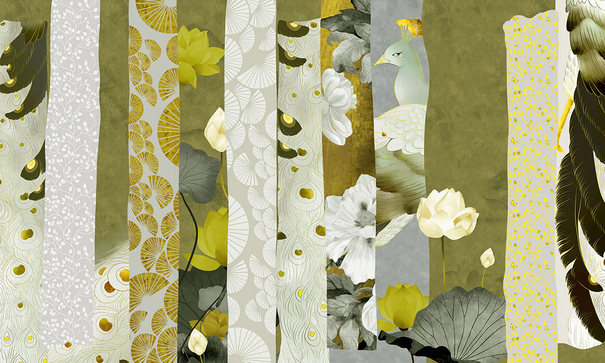 Donnez vie à votre mur avec cette élégante peinture murale art déco. Ce fond d'écran combine une variété de belles images d'une manière hamonieuse avec une simple grâce. Ajoutez une atmosphère paisible et calme à votre salon, salle de bain, chambre à coucher et salle à manger. Travaillez parfaitement à vos meubles de style moderne et à vos décors de maison.