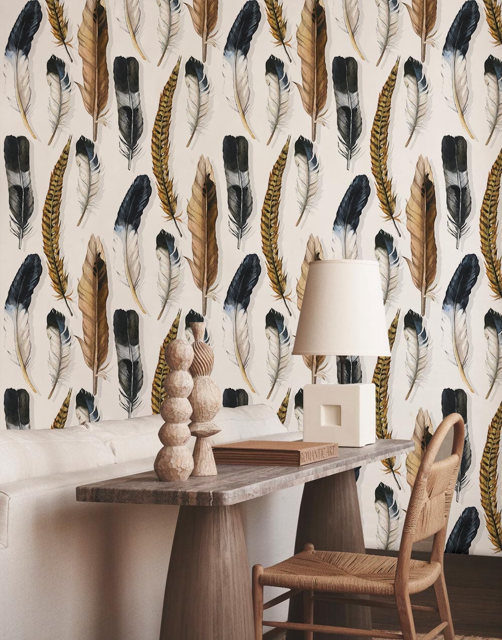 Apportez une touche romantique et féminine à votre intérieur avec le papier peint mural Plumes. Doté d'un design inspiré de la mode rococo du XVIIIe siècle, ce papier peint mural apporte un air d'élégance du vieux monde à votre intérieur. Les délicats motifs de plumes sont embellis ici et là par des fleurs et des fioritures qui ajouteront un peu de vie à votre appartement. Le design coloré et la disposition luxueuse de ce papier peint vintage rempliront votre espace d'un sentiment de légèreté et de tranquillité.