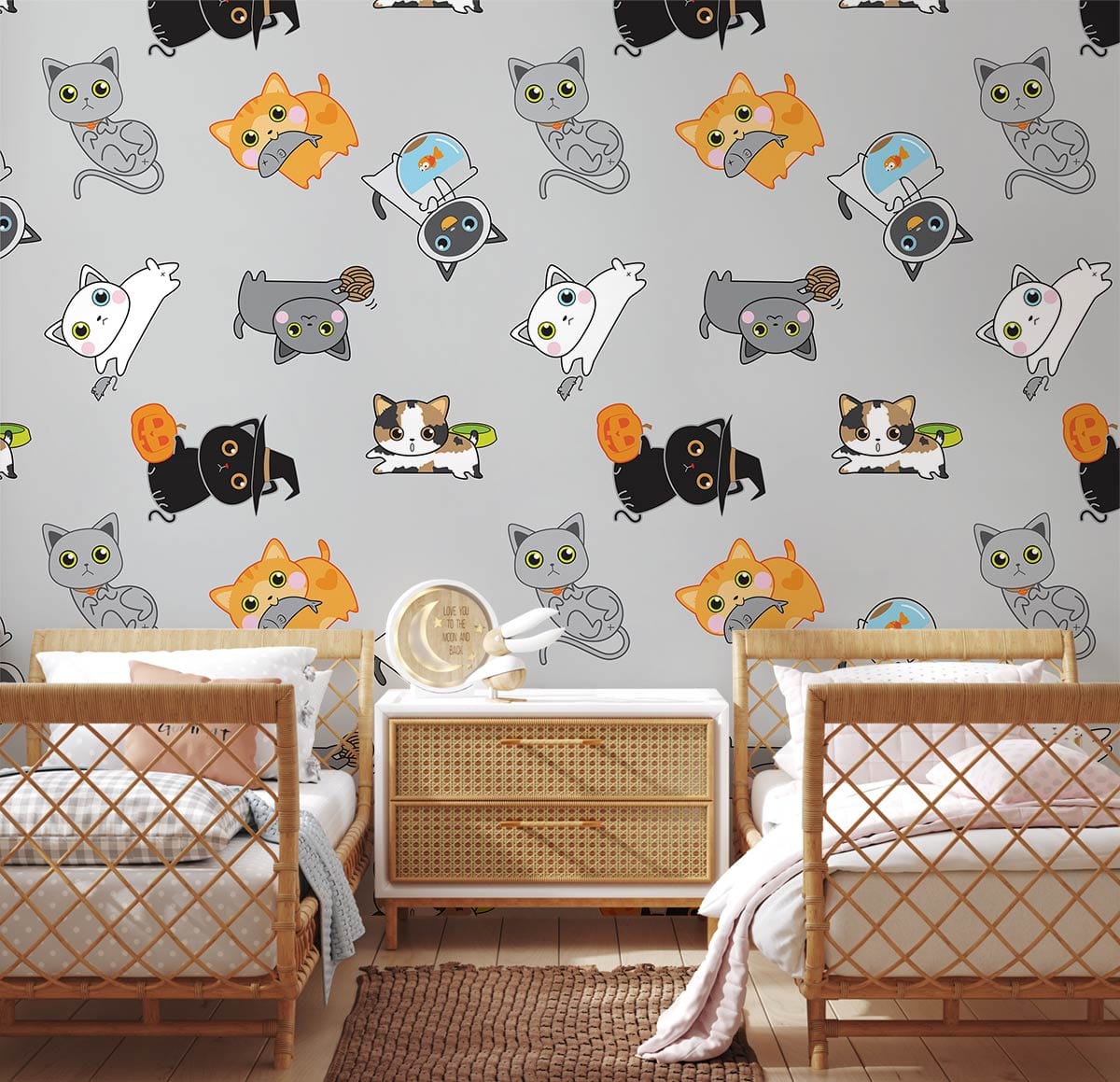 Ces adorables petits chats rendront votre vie remplie de plus amusantes et ajouteront beaucoup de joie à votre place. Ces chats coquins rendront vos enfants si occupés avec leurs couleurs et amélioreront l'imagination de leur côté. Si vous êtes prêt à avoir un animal de compagnie de chat, vous obtiendrez les vibrations à votre place avec ce Ever Wallpaper qui rendra le chat si ludique aussi. Le fond gris clair rend le papier peint neutre afin que vous puissiez choisir n'importe quelle couleur de décorations et de meubles à utiliser à partir des couleurs de la murale pour plus de contraste.