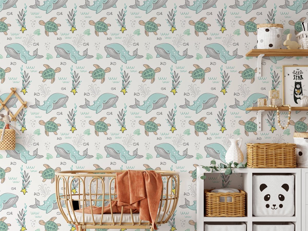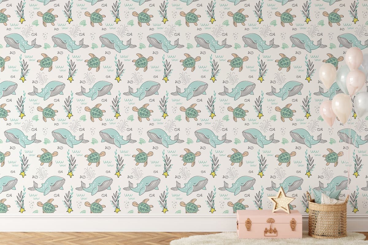 Inspirez vos enfants avec notre dessin animé baleine & murale papier peint tortue. Ce papier peint est conçu dans des motifs répétés de baleines mignonnes et amp; tortue avec étoile de mer & l'impression d'algues marines, qui fait fondre le cœur et peut apporter un nouvel attrait à l'espace intérieur. Papier peint parfait pour chambre d'enfant et chambre de bébé pour relooker vos chambres.
