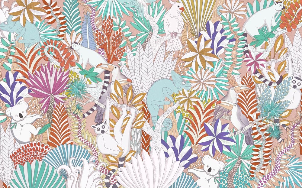 Avec ce papier peint mural turquoise dense de la jungle, vous pouvez créer une impression sauvage et tropicale dans la chambre de votre enfant. Ce papier peint de la jungle est certain de devenir le centre d'attention de la prochaine fête de votre enfant grâce aux perroquets, koalas, paresseux, lézards et autres animaux de ce motif ! Ce motif donnera à vos murs une ambiance vibrante et aventureuse grâce à sa magnifique couleur turquoise. Des teintes foncées sont utilisées pour détailler les plantes et les feuilles de la forêt tropicale dans ce papier peint mural safari, lui donnant une illusion de profondeur et un look unique.