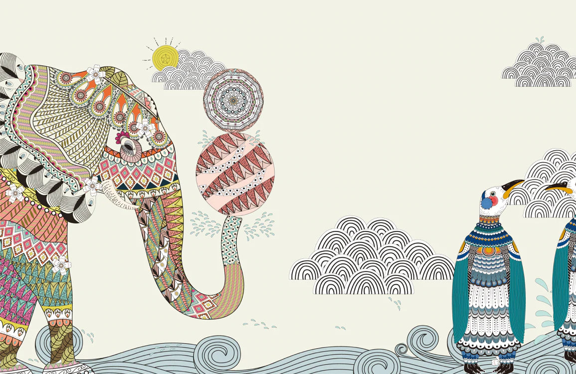 Décorez votre mur avec ce papier peint éléphant de style thaïlandais ! Avec un arrière-plan aux tons terreux et une injection de couleur de l'éléphant exotique, vous créerez certainement un mur caractéristique étonnant dans votre espace avec ce papier peint d'éléphant. Fonctionne bien avec les meubles et les décorations de style traditionnel et ethnique.