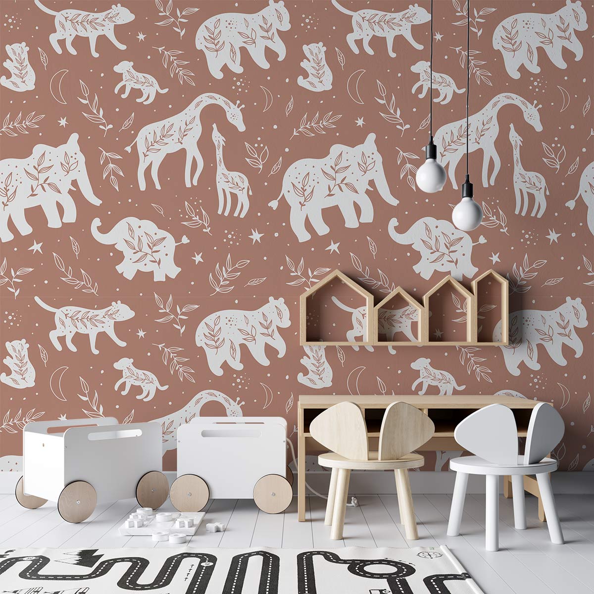 Avec ce papier peint mural Animals Leaves, vous pouvez donner à votre pièce une atmosphère naturelle et relaxante ! Si vous êtes passionné par la nature, c'est le bon choix pour vous, car il présente la jolie silhouette d'animaux sauvages comme des girafes et des éléphants avec des feuilles et des motifs lunaires ajoutés sur la surface. Cette impression apporte une atmosphère invitante à n'importe quelle pièce dans laquelle elle est placée et vous donnera l'occasion de respirer une nouvelle vie, notamment dans votre salon à thème et votre chambre d'enfant. Cette toile d'art mural apportera une touche d'élégance décontractée à votre maison, ce qui la rendra utile si vous souhaitez avoir un intérieur au look particulier.