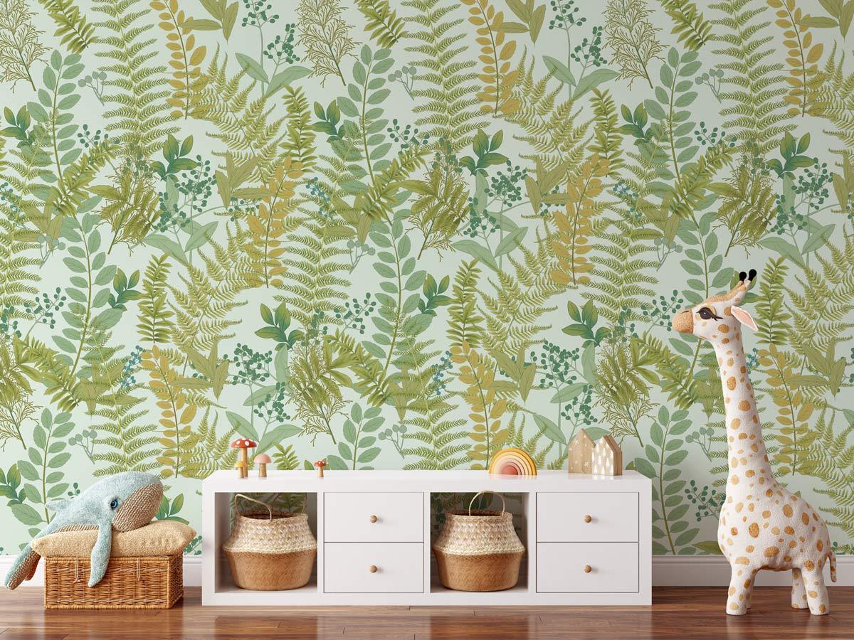 Rapprochez la nature de vous avec cette murale de papier peint à feuilles vertes. Ces feuilles vertes fraîches sous un fond bleu pastel font une impression plutôt dramatique et feront sûrement une déclaration de nature et élégante dans votre maison. Ce superbe Ever Wallpaper vert sera incroyable dans votre salon, votre chambre ou votre salle à manger.