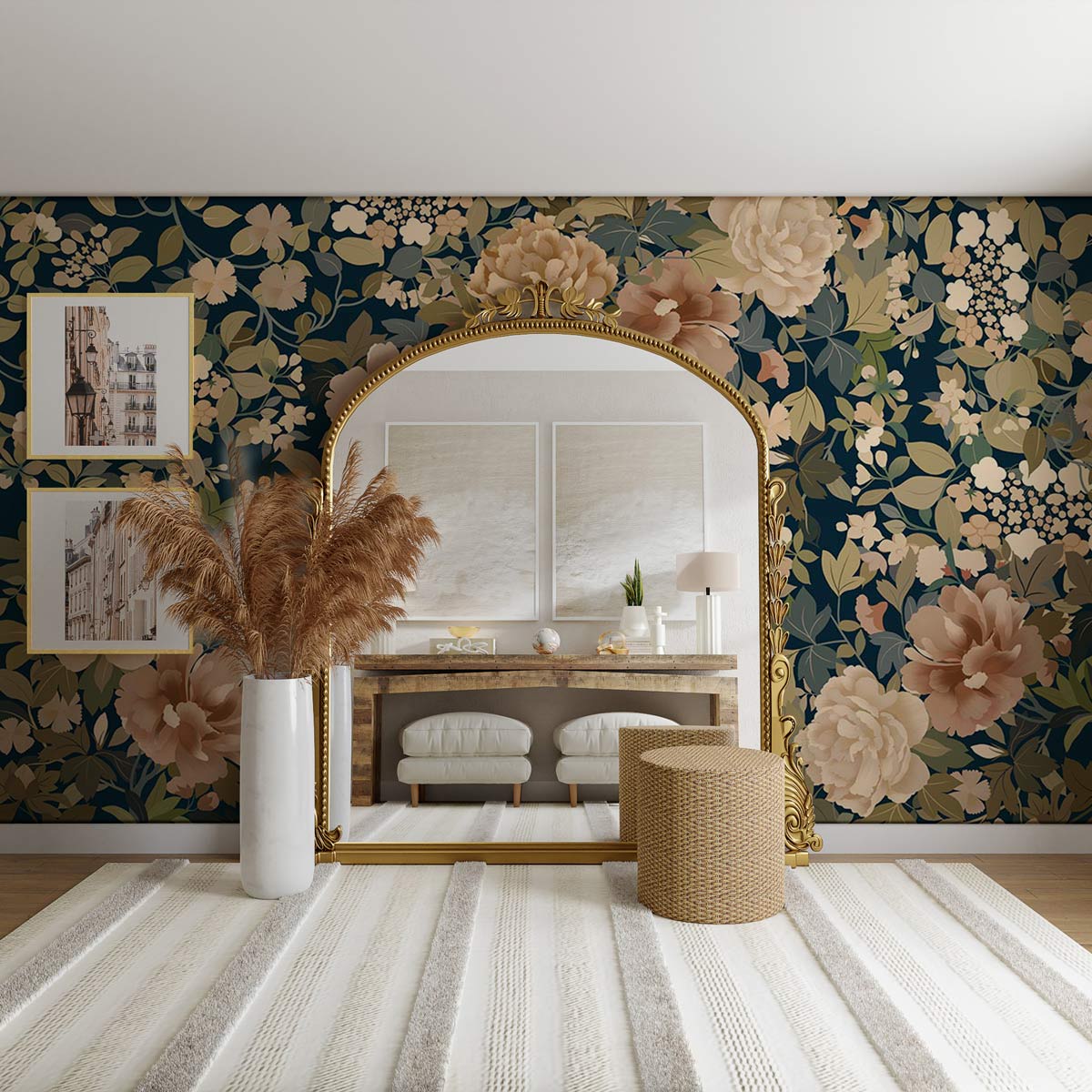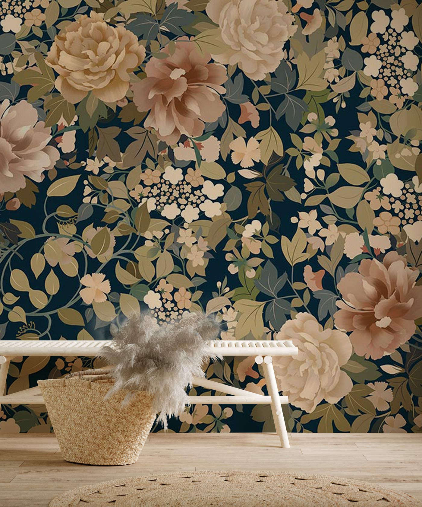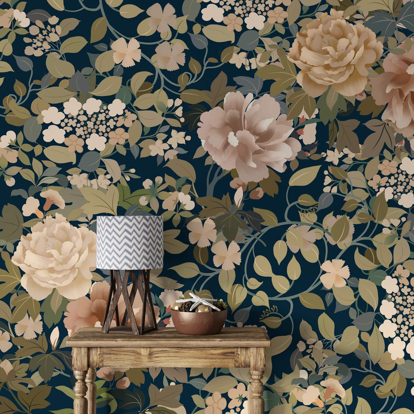 Rendez-vous à la maison avec cette murale de papier peint floral classique et élégant. Les fleurs roses et les feuilles vertes pastel sur la toile de fond du ton de la marine noire crée un look vintage et classique. Utilisez-le pour accentuer un mur de fonctionnalités dans votre salon ou votre salle à manger pour sentir instantanément que le printemps arrive. Associez le fond d'écran à des meubles traditionnels ou modernes de votre choix et regardez votre espace parler d'elle-même!