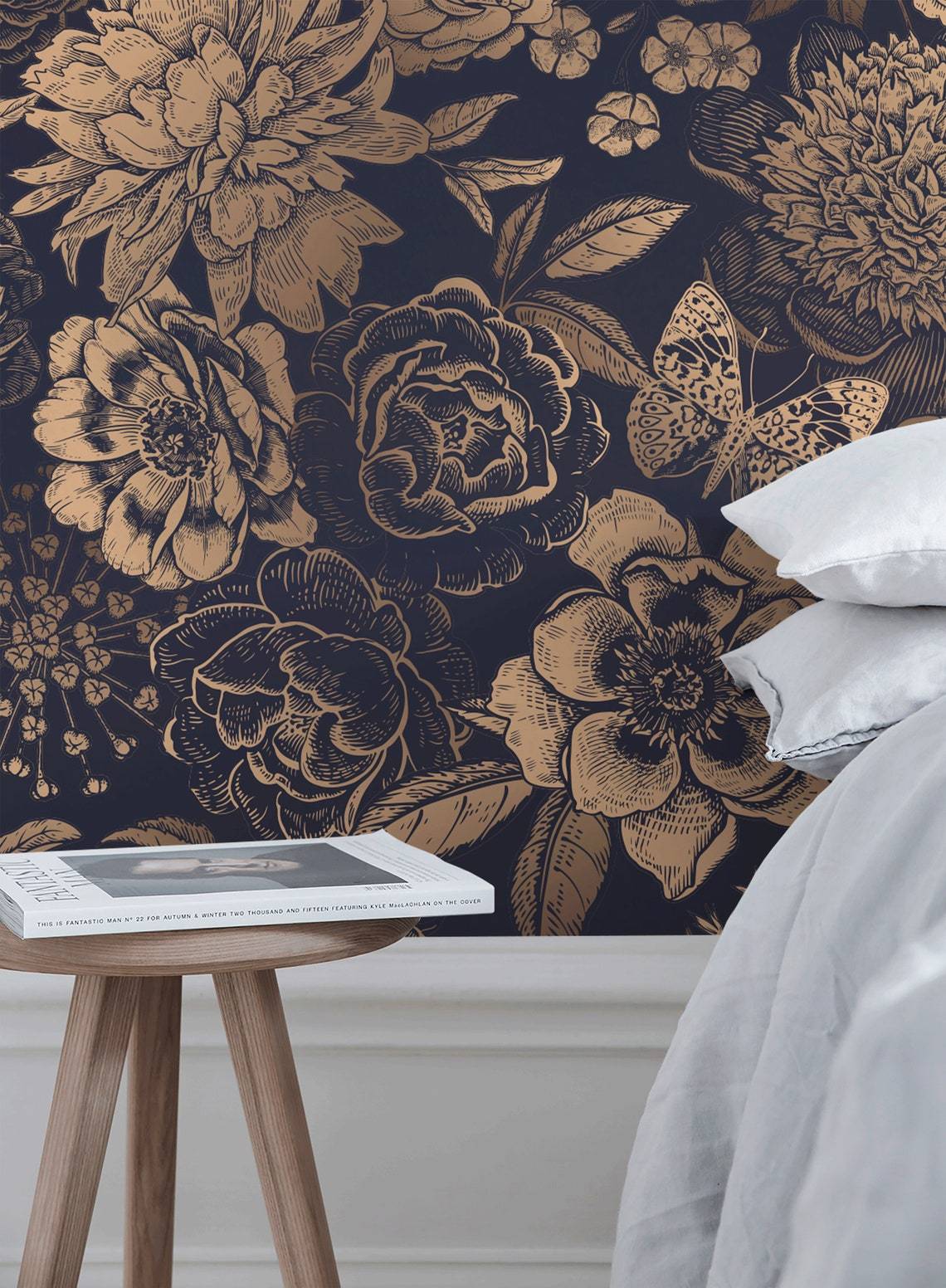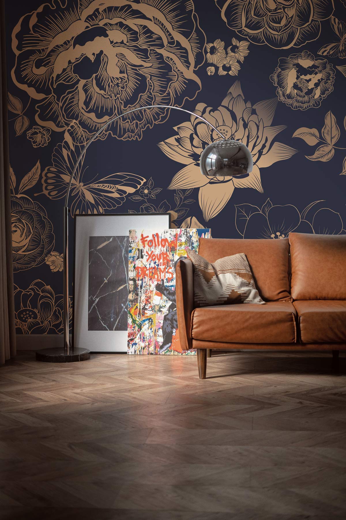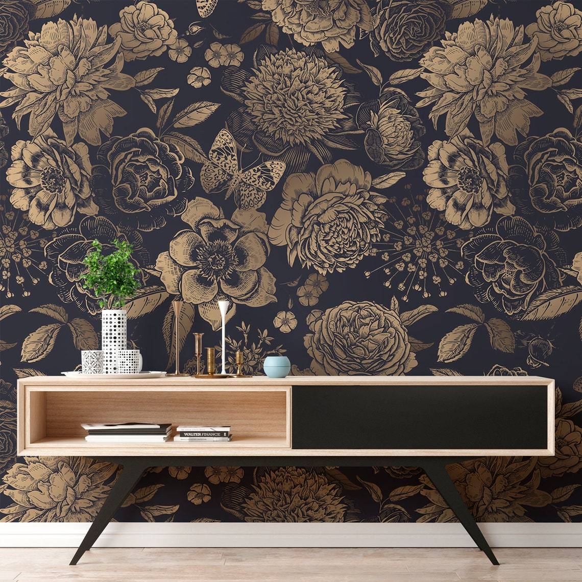 Ajoutez une touche de glamour à vos murs avec cette murale de papier peint à fleurs vintage accrocheur. Les motifs envahissants de la fleur en accents d'or, avec les détails des pétales, en font un spectacle à voir. Décorez votre salon avec ce raffinement accompli qui épelle le luxe pur. Impressionnez vos invités avec ce chef-d'œuvre d'une murale murale.