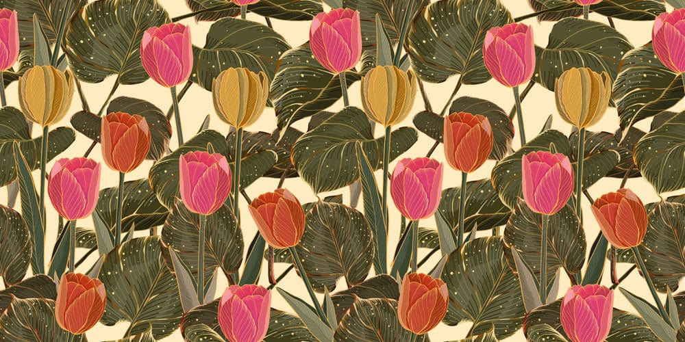 Attirez l'attention sur vos murs avec ce papier peint floral. L'accent est mis sur les jolies fleurs jaunes, orange et roses affichées dans cette peinture murale. Les détails superbes et les tons colorés ne manqueront pas d'égayer n'importe quelle pièce, surtout si vous aimez les fleurs et les feuilles. Notre papier peint mural Tulip Focus est un design classique qui ne se démodera jamais, il est donc sûr de créer un bel accent sur vos murs chaque fois que vous aurez envie de passer à ce papier peint tropical.