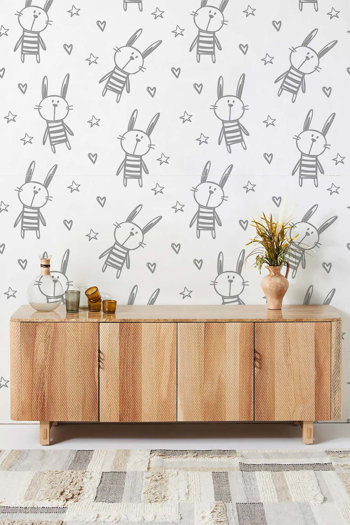 Décorez la chambre de vos enfants avec un papier peint mural simple et très neutre qui convient aussi bien aux garçons qu'aux filles. Laissez-les adorer leur chambre et se sentir détendus et attachés à leur petit espace préféré. Le gris de l'arrière-plan et les nuances de gris foncé des motifs de lapin vous donneront toute latitude pour choisir parmi différentes palettes lors de la décoration de la chambre avec ce papier peint mural. Vous pouvez l'adapter aux adolescents et aux enfants et elle sera très jolie avec un lit blanc cassé, des tapis moelleux et des rideaux en mousseline.