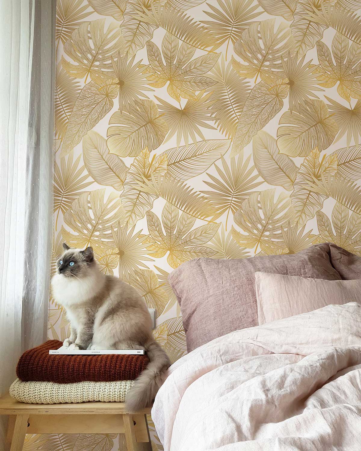 Give your walls a creative look with the Gilt Leaves Wallpaper Mural. It features a large golden leaf design that creates an elegant, chic effect in any room of your home. An ideal way to add drama to your interior scheme, this leaf wallpaper is great for those who want to create a funky ambiance in their home office and business areas. This mural can be hung alone or in combination with others from the accessories collection to achieve your desired look.