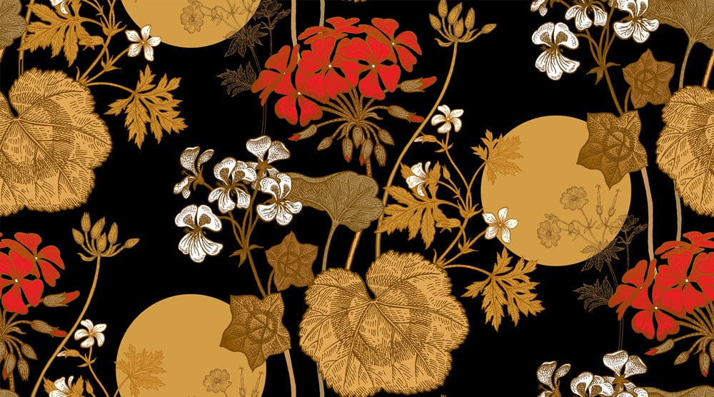 Superbe papier peint présentant des fleurs colorées sur un fond noir, notre papier peint mural Moon and Flower est un ajout vif et lumineux à votre espace de vie. Ajoutant une touche de glamour à vos murs, cet élégant papier peint à motifs de fleurs dorées créera un espace luxueux dans lequel vous voudrez être tout le temps, surtout avec ses fleurs rouges audacieuses, ses feuilles dorées fraîches et sa lune brillante. Ce motif convient parfaitement aux bureaux, aux cuisines et aux autres espaces de travail.