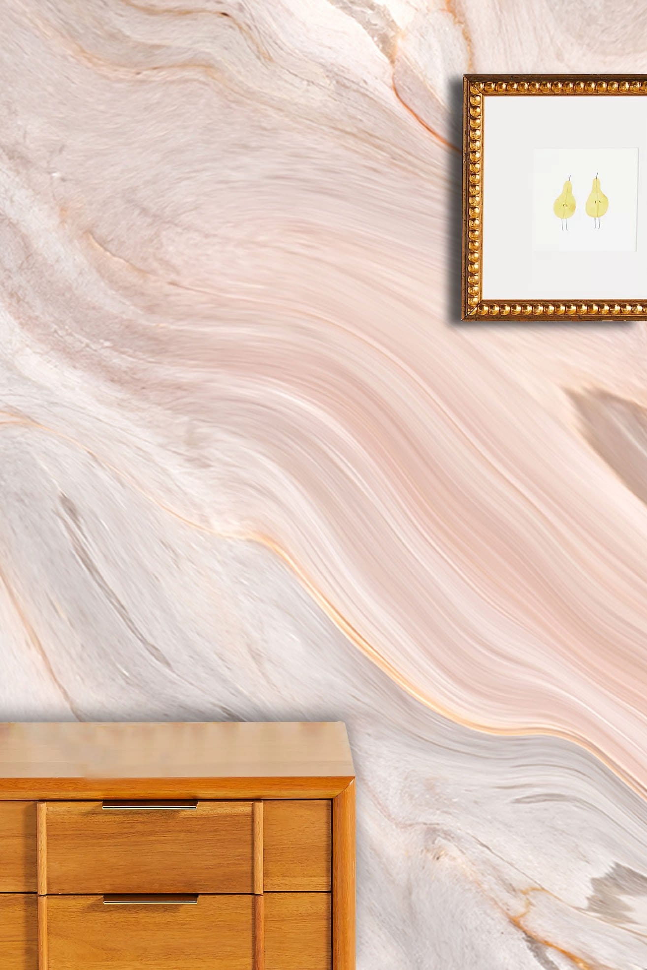 Cette décoration murale à motifs de marbre danse avec des couches de couleur claire et rose subtiles. Un design unique peu orageux, mais apaisant, avec un fort intérêt textural. Papier peint mural disponible en papier peint amovible à peler et coller et en papier peint permanent. Imprimé avec des encres sans danger pour les enfants.