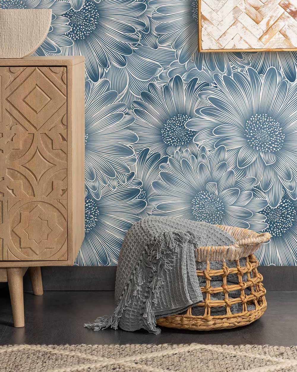 Ce papier peint mural marguerite bleu avec un design de marguerites dessinées au trait est un ajout bienvenu dans n'importe quelle pièce. Un magnifique motif floral dans des tons doux et pastel, ce papier peint floral ajoutera une douce touche de couleur à votre décor, apportant un style frais à votre maison. Les lignes blanches simples sur un fond bleu vibrant donnent de la vie et de l'excitation à n'importe quelle pièce de votre maison, mais surtout à la chambre de votre enfant avec un éclat de couleur et de beauté sur vos murs.